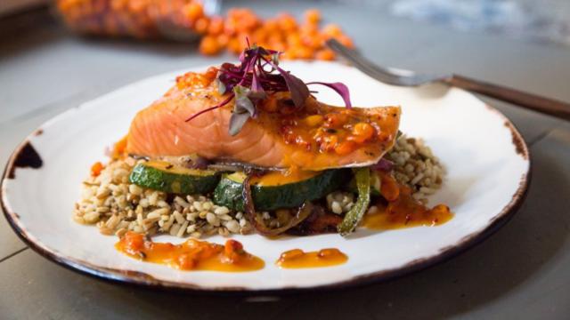 This one might not be for the vegetarians or vegans out there who aren’t comfortable with meat near them, which Le Lapin Saute is not shy about. Here, you can get Duck “foie gras” terrine with a maple blueberry compote, warm rabbit liver and kidney salad, an entire duck and rabbit charcuterie board, or even escargots. There are a ton of vegetarian options, too though, like mushrooms on risotto, or a tofu and vegetable sautee. Picture below is from their expanded menu — it’s salmon with jam. All comfort food here!