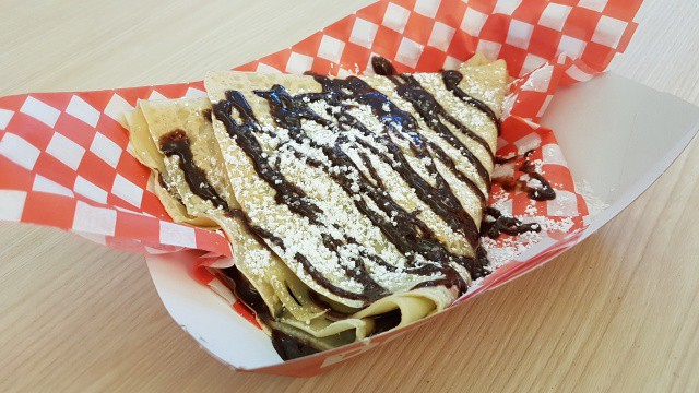 Dipsidoo at Bramalea stays straight to the point when it comes to crepes – you can get one with just Nutella, or you can add fresh fruit like blueberries, strawberries, or blackberries. You can watch them make your massive, thin, beautiful crepe, smear chocolate and fruit (I can’t stress enough how fresh their fruit is) inside, fold it all together, and douse it in icing sugar and more chocolate. They make a solid crepe, thin, even, and delicious, and you might want to ask them to go easy on the chocolate, but some people might love the sugar and extra chocolatey-ness!