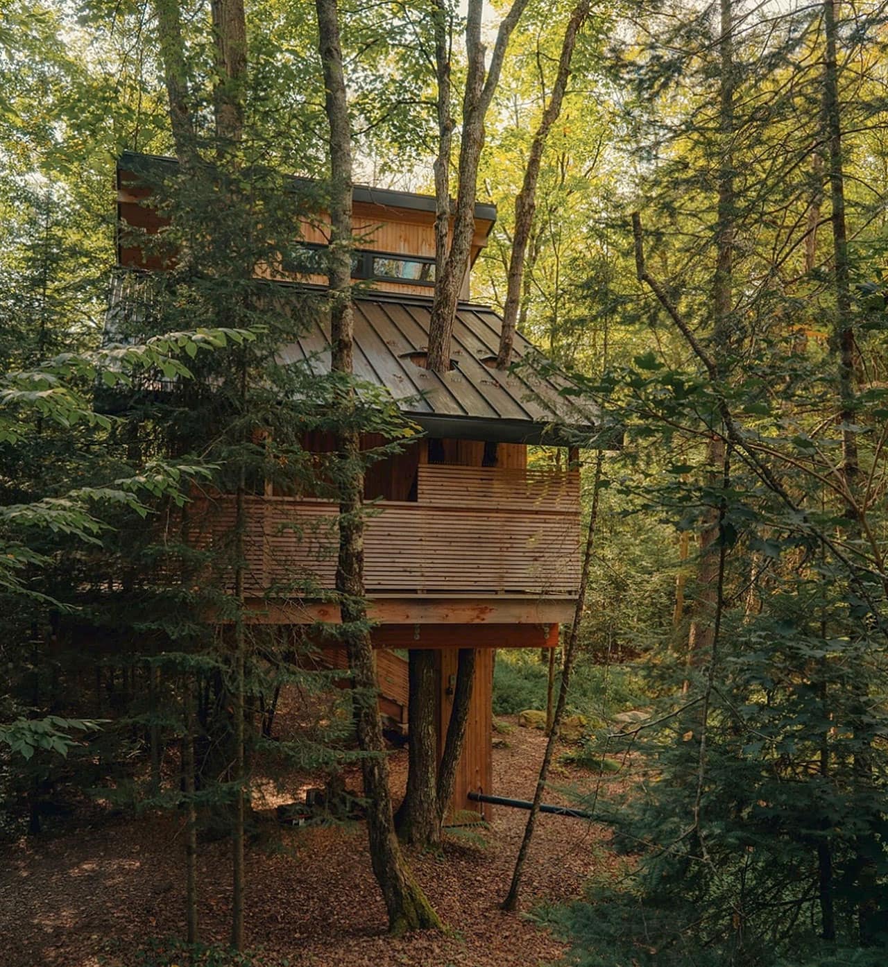 Fort Treehouse Co., in Haliburton Highlands, offers a vacation property in the trees. The Baltic, a Baltic birch plywood home is surrounded by forest and nature.