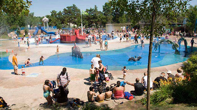 Located in the Toronto Zoo’s Discovery Zone, Splash Island has two acres of waterslides, water-spouting animals, waterfalls, and tipping buckets. There is also a splash pad area for cooling off with misty water spouts. The best part about this park is the fact it’s at the Zoo. Families can visit the park after seeing the animals and the newly re-opened Kangaroo Walk-Thru. You can also learn about which plants and animals live in different bodies of water in Canada.
