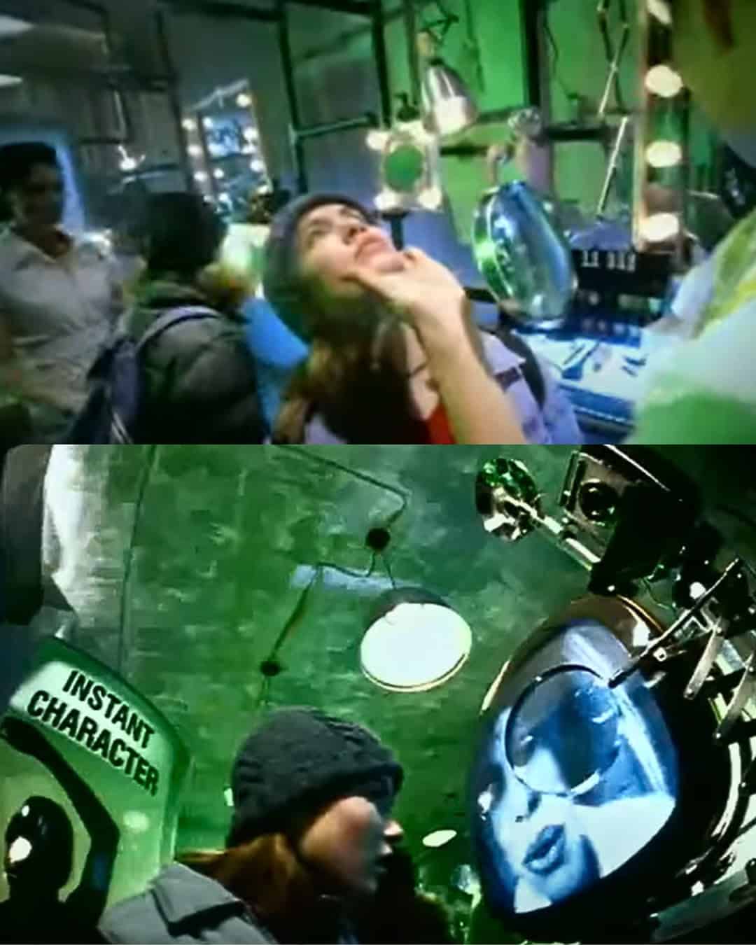 After seeing a stylish older girl leave a boutique, two young girls enter, hoping to be transformed. Instead, they’re pressured through a bizarre series of “enhancements,” from makeup and plastic surgery to a “personality changing room.” A robotic voice repeats, “Why be you, when you can be me?” The girls ultimately run out, choosing to remain themselves.