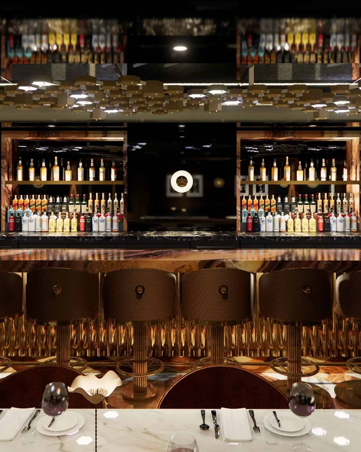 From the looks of their social media, the splashy design makeover of the space includes lots of luxurious stone, dramatic lighting, bold textures and plush seating.