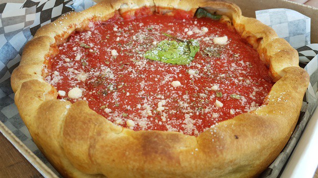 Chi Pie Pizza’s name was inspired by Chicago-style deep dish pizza, which is literally a pizza baked in a deep dish — the crust is typically two or three inches high, the pizza is baked in a round steel pan for 30 minutes, and the coolest part is one pizza weighs about four pounds.