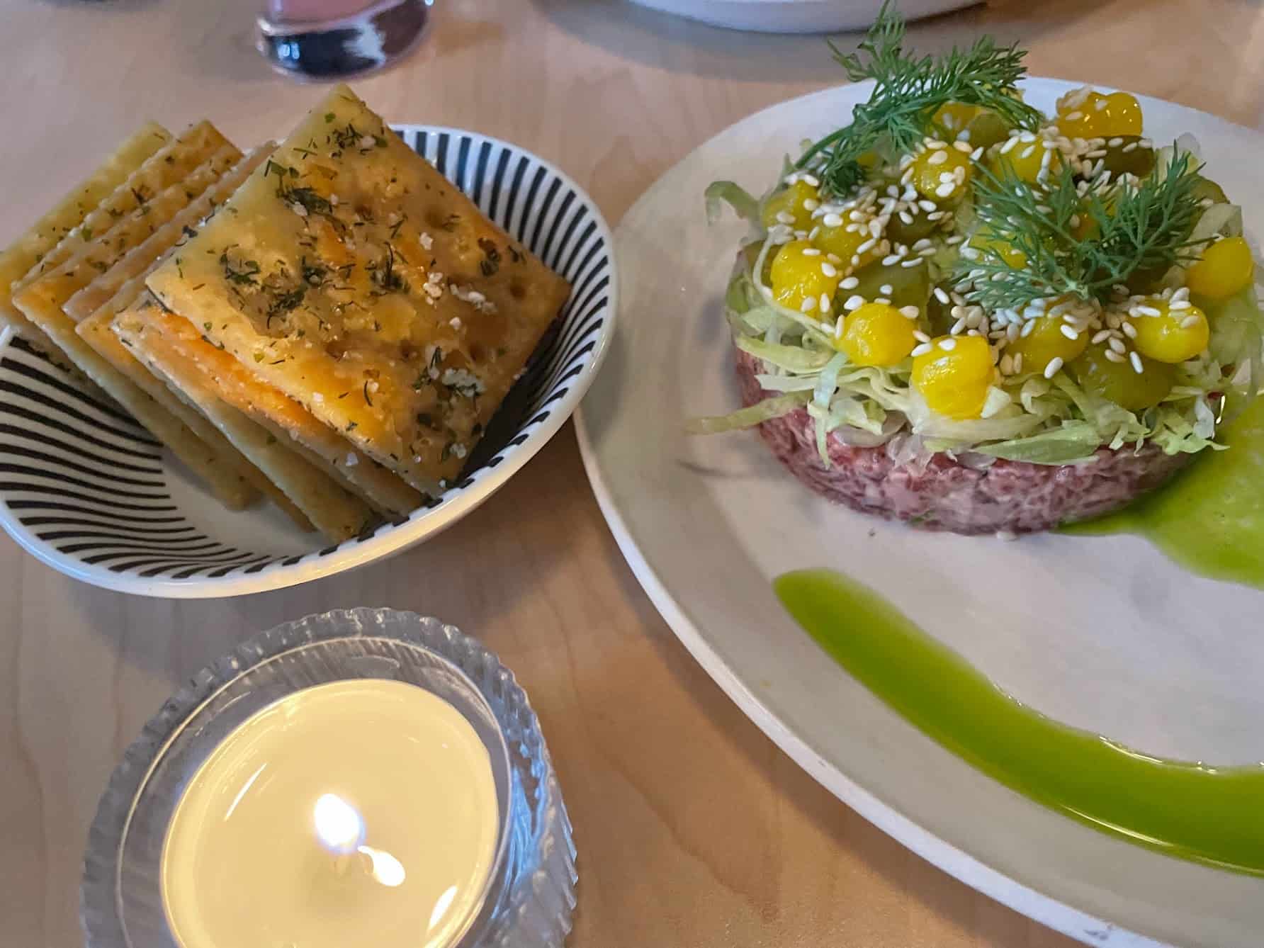 A cool new cocktail bar and restaurant specializing in refined (but still fun) shareable plates, Ricky + Olivia was warmly welcomed by patrons when it opened its doors on Queen Street East in 2024. Defining its concept as “Jovial and playful. Nostalgic and thoughtful,” the restaurant (which boasts a lounge and dining room) offers locals a moodily lit spot that’s ideal for a romantic date night or casual friend dinner. The cocktails are top-notch and creative (there’s a Saltini made with deep-fried saltine-infused vodka, olive brine, vermouth, R+O seasoning and sesame) and the menu boasts some unforgettable gems, including a luscious steak tartare that you don’t want to miss. Also, try the latkes.