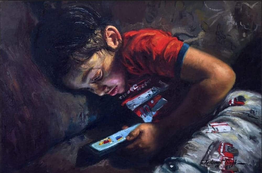 Kulwant Singh, Growing up in Cyberland, oil on canvas, 12 x 18 inch