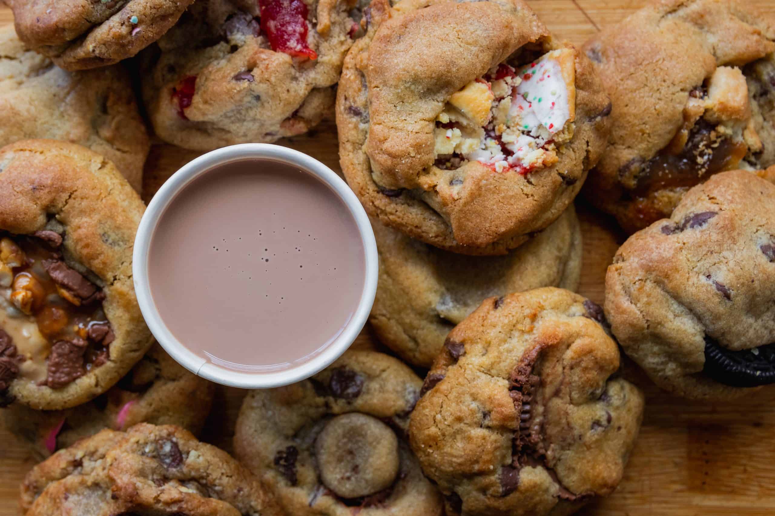 The cookie company is known for chewy cookies stuffed with all manner of desserts and candy, from pumpkin pie to Sour Cherry Blasters, peanut butter cups, M&Ms and pop tarts They regularly rotate through over 75 different flavours.