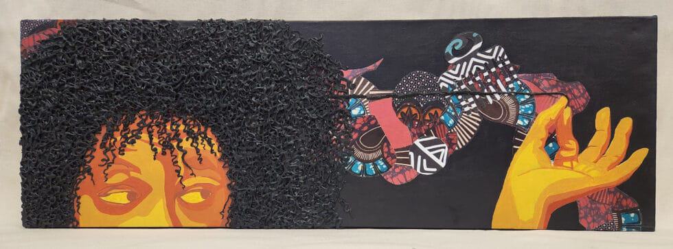 “I am a self – taught artist with a focus on acrylic painting. I gain artistic inspiration from all that I deem beautiful including Black women and their versatile hair.