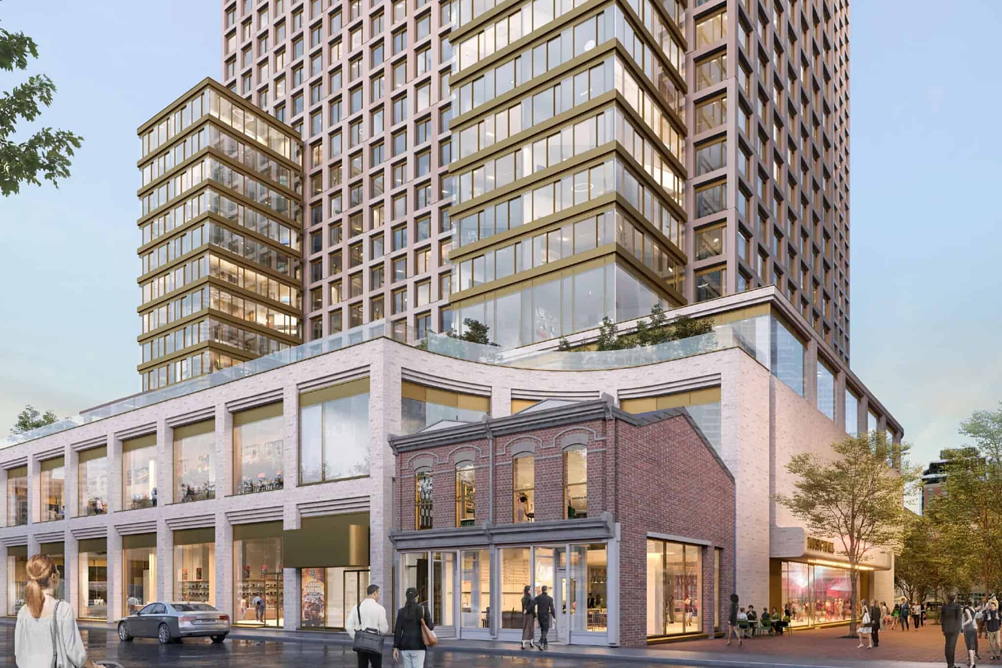 Designed by Hariri Pontarini Architects and Graziani + Corazza Architects the project incorporates 19th-century warehouse facades.