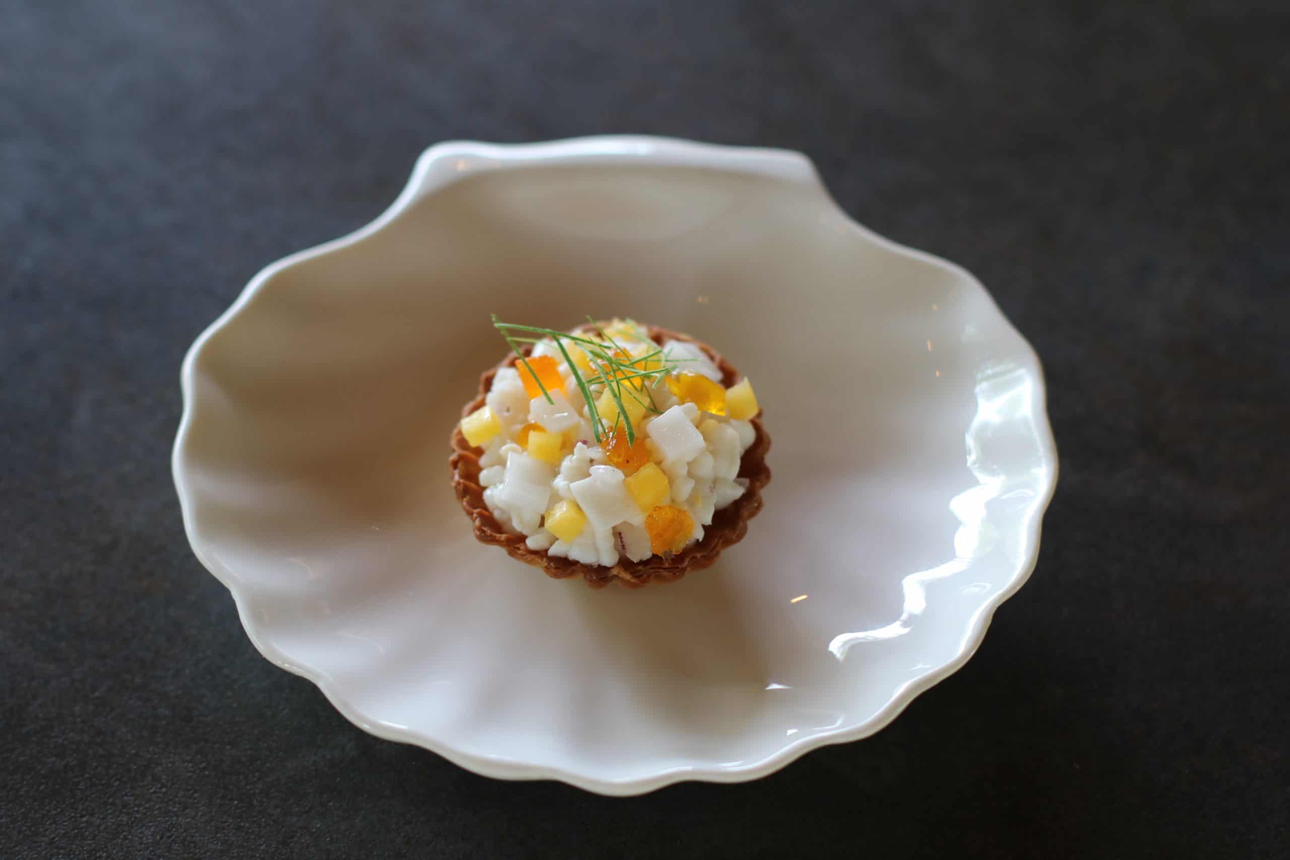 The menu for the six-course pop-up dinner includes dishes like an ancestral Amazonian snack with cured trout and cassava, a fresh prawn ceviche, cantaloupe chilled soup, marinated scallop, caramelized Chantecler chicken and eggplant cheesecake.