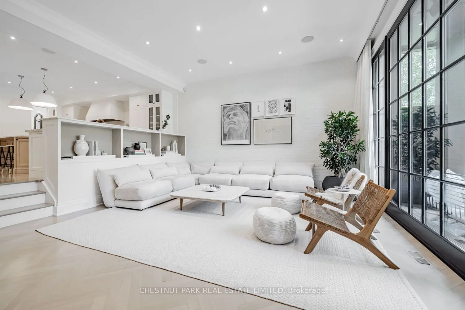 This classic South Rosedale home sold for $7,000,000 after being listed for $7,499,000. The rejuvenated property, not far from Yonge Street, offers eight bedrooms and four bathrooms and has been “reimagined” by Baldwin & Franklin Architects with a substantial addition and renovation. The home spans over 5,000 square feet and boasts a gourmet kitchen with high-end appliances, a detached two-car garage, a secondary family room, a spacious master bedroom with a luxurious en-suite bathroom and walk-in closet, an office with custom-built-ins, a rec room, a wine cellar, and more.