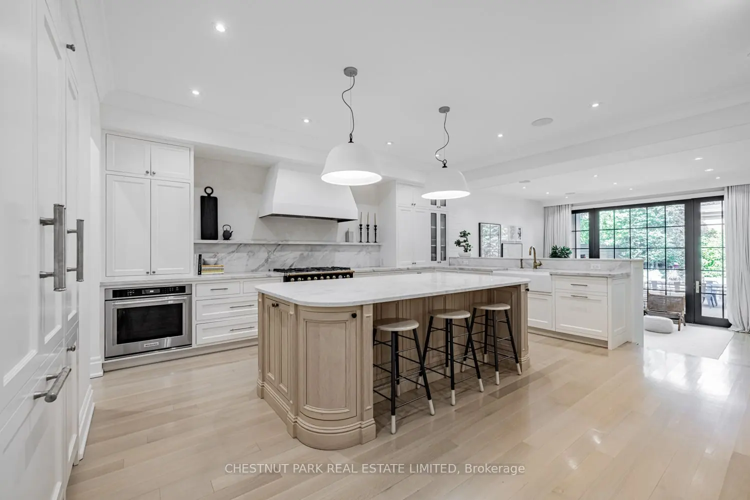 This Rosedale home, a rebuild by R. Wengle, was featured in Canadian House & Home magazine. The home, which boasts five bedrooms and five bathrooms, sold for $6,800,000 after being listed for $6,250,000. The house also features stained white oak, modern millwork, oversized windows, a sleek chef’s kitchen with a La Cornue gas range and multiple wine and beverage fridges, a luxurious master bedroom with a private balcony and a spa-like en-suite bathroom, a climate-controlled wine cellar, a mud room, and more.
