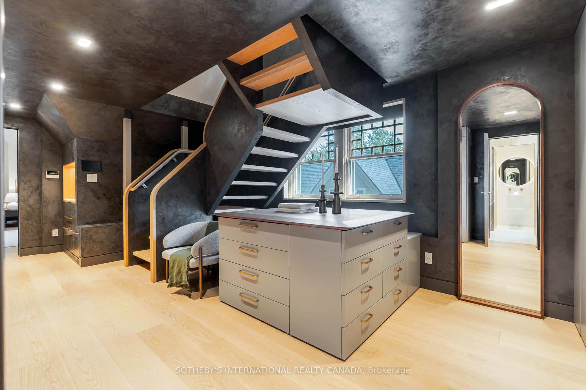 Appropriately called “opulent” in the listing, this Cabbagetown home with a Queen Anne Revival exterior sold for $7,050,000 after being listed for $6,850,000. The five-level house, which offers a mix of classic elegance and contemporary chic, boasts a restored foyer and staircase (an homage to the house’s history) and modern oak millwork, as well as Roman clay-plastered walls and ceilings. The house boasts an open-concept great room, a chef’s kitchen with Gaggenau appliances, an elevator, a luxurious master bedroom with a dressing room and a spa-like en-suite bathroom, a fourth-floor loft with an exercise room, a detached backyard pavilion, and more.