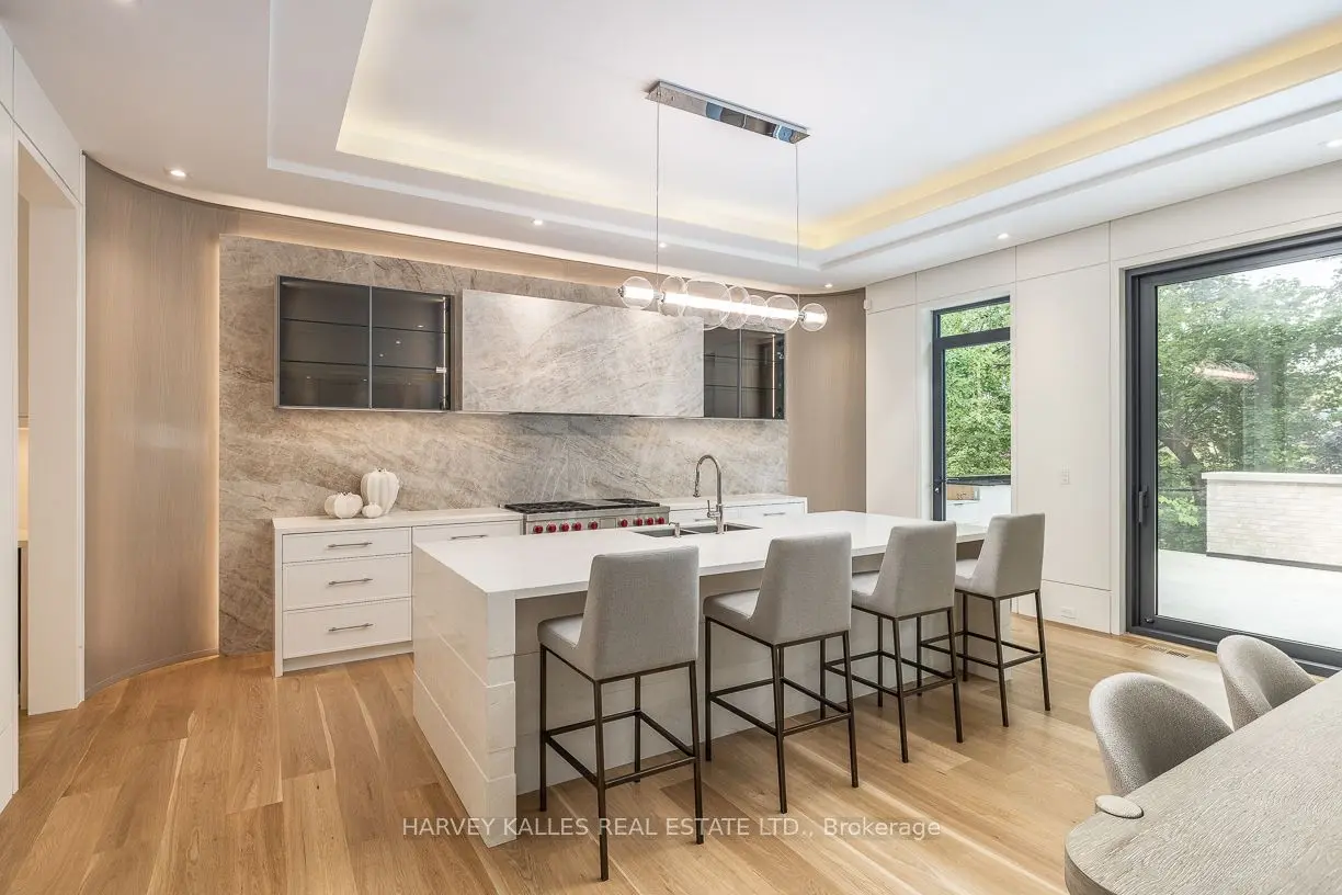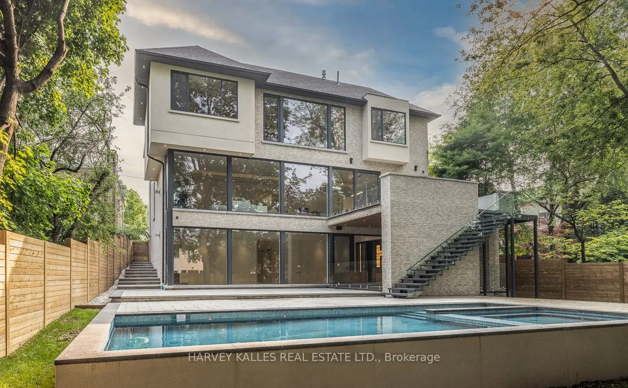 This modern and elegant Lawrence Park home sold for $9,500,000 after being listed for $10,798,000. The newly completed, custom-designed home spans over 7,000 square feet. It features seven bedrooms, nine bathrooms, a private elevator, heated marble floors, bespoke architectural millwork, and an exterior composed of brick, aluminum, and Indiana limestone. The home also features a chef’s kitchen with custom cabinetry, a walk-out deck leading to an outdoor kitchen, a heated pool, a dressing room, and more.