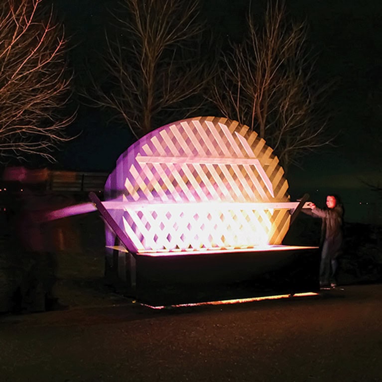 Head to 777 Bay Plaza to find two installations: Crosshatch and Fireside Storytelling.