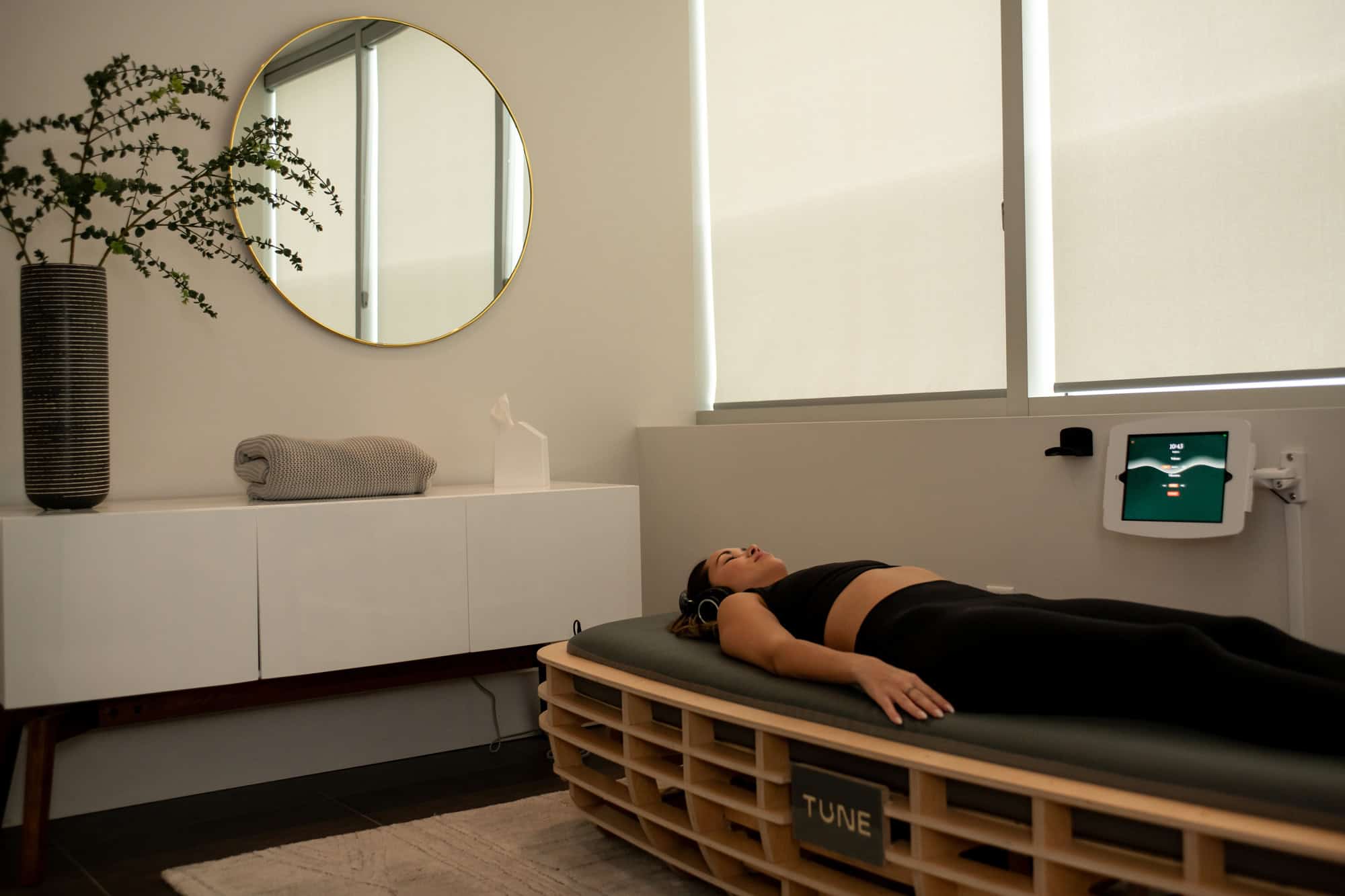 “We also have the world’s first tech-enabled meditation pod that offers 20-minute meditation sessions that shift your state and enhance your energy field. Our TUNE vibroacoustic performance tech uses sound vibrations to recalibrate your nervous system and reduce stress by 54 per cent in just 15 minutes,” says James.