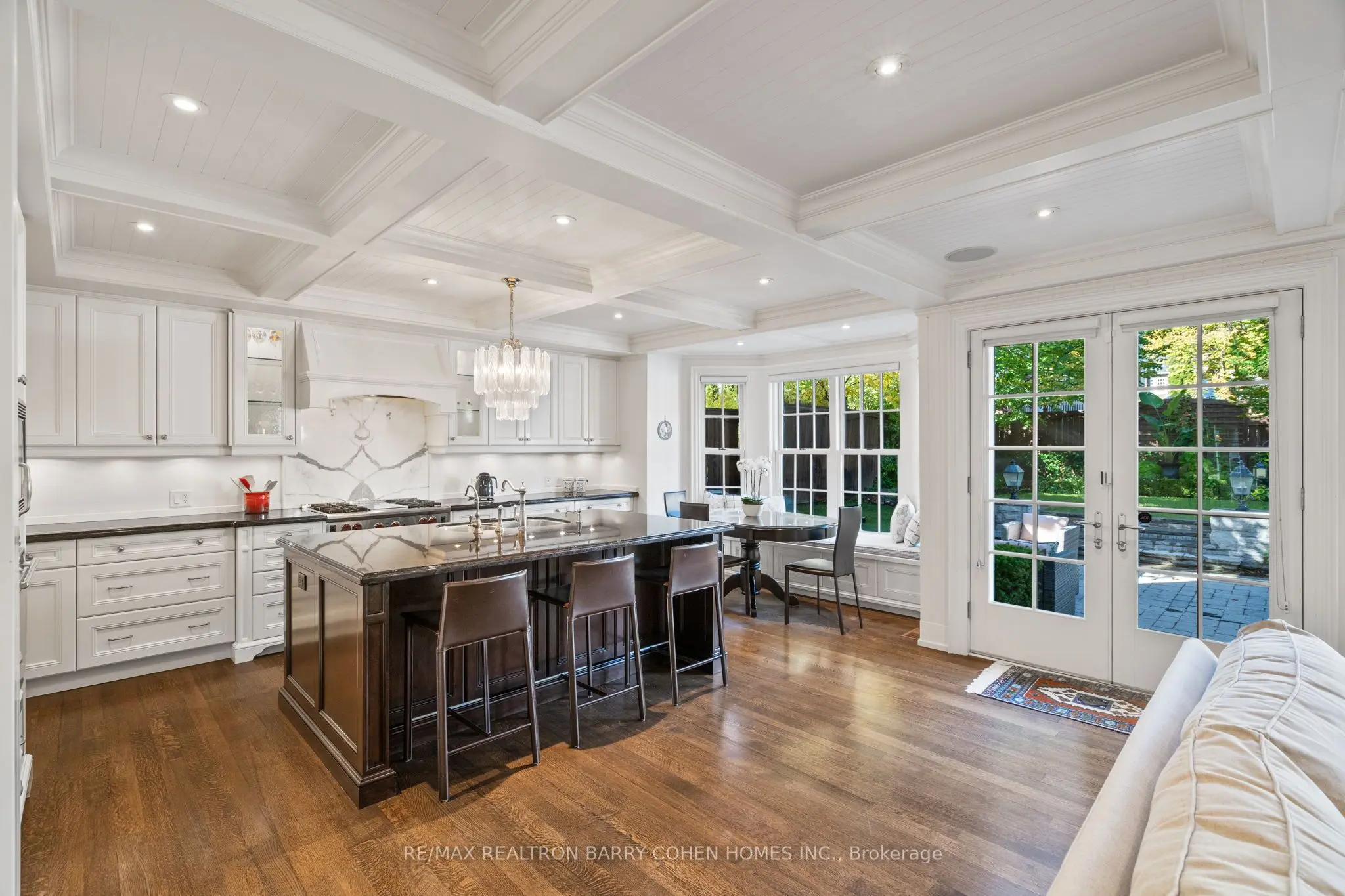 This Forest Hill house sold for $5,600,000 after hitting the market at $5,995,000. Boasting six bedrooms and six bathrooms, the Georgian-style home boasts high-end finishes, a five-car driveway and detached garage, a yard with an award-winning Adam Gracey stone patio, hardwood and marble floors, in-ceiling Sonos speakers, and a large dining room with Wainscot panelling. The home also features a gourmet kitchen with custom cabinetry, luxurious bedrooms, a finished basement with heated floors, and more.