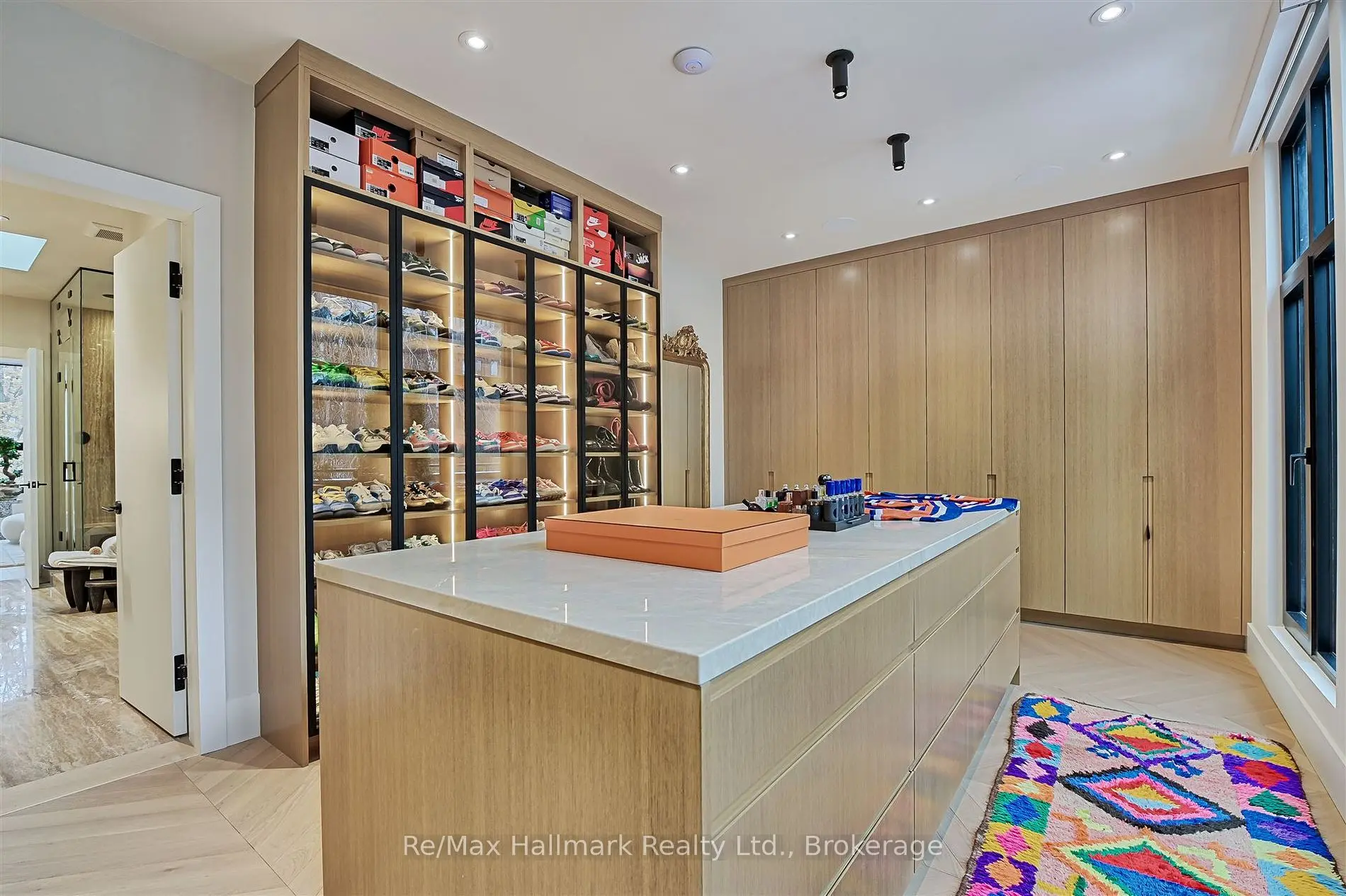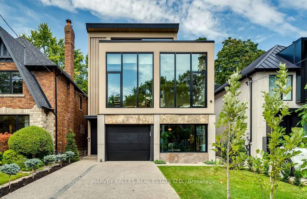 Elegant but a little daring, this modern home almost feels like a brand new luxury hotel. The four-bedroom, five-bathroom North-Midtown home sold for $7,200,000 after being listed for $7,800,000. Called a “true architectural gem,” the house boasts white oak finishes, unique marble accents, a striking living room with 18-foot ceilings, a designer kitchen, custom wine storage, a glass shoe display case, a gym and ample outdoor space. The house, which is close to Ramsden Park and Yorkville, also includes an elevator.