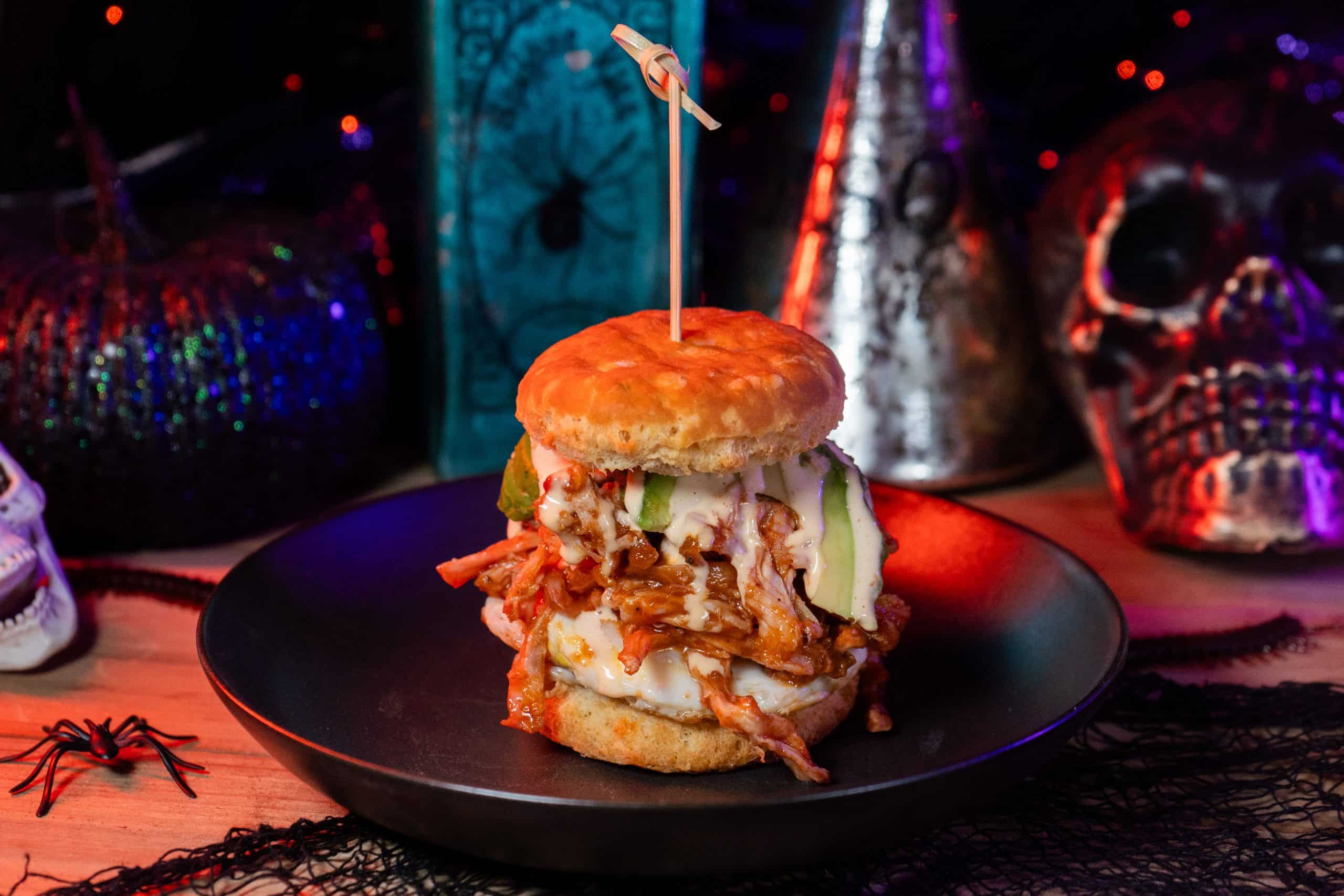 The best part is, there will be fun new Halloween-themed food. This year there will be a new Zombie Apple Fritter as well as a Witches Brew blood bag cocktail. Other menu items are the Witches’ Poutine with nacho cheese, sour cream, and jerk chicken, the footlong Medieval Dungeon Dog topped with spicy chili, cheese, and crispy onions, the Junkyard Chicken Sausage with spicy sriracha aioli and pickled veggies, and Bear Bites smoked chicken sandwiches with a fried egg, avocado, and aioli.