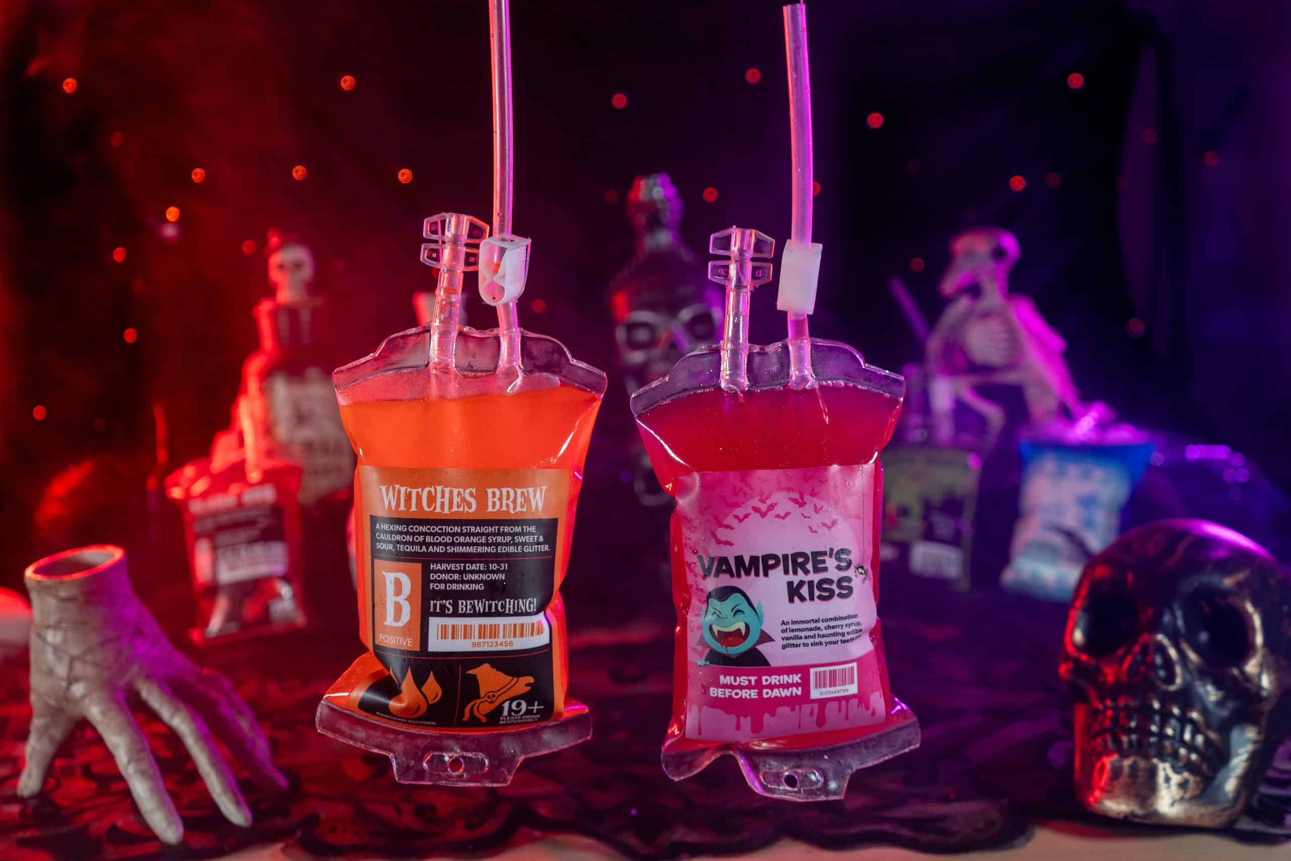 The Witches Brew blood bag cocktail is made with sweet and sour mix, tequila, blood orange syrup and edible glitter. There will also be a mocktail on offer, the Vampire’s Kiss with lemonade, cherry syrup, vanilla and edible glitter.