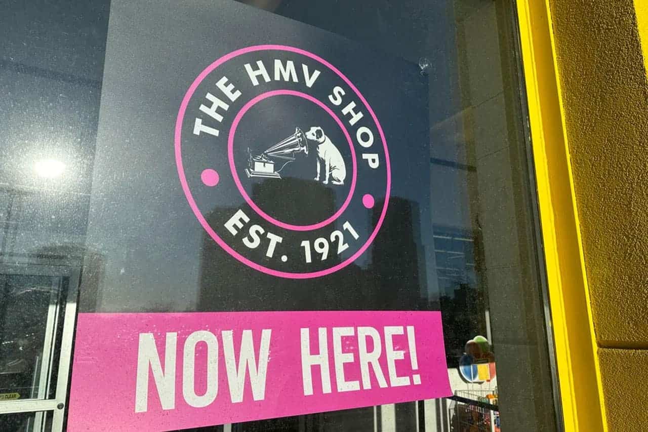 The HMV shops are selling vinyl records, CDs, t-shirts, collectibles and nostalgic merchandise.