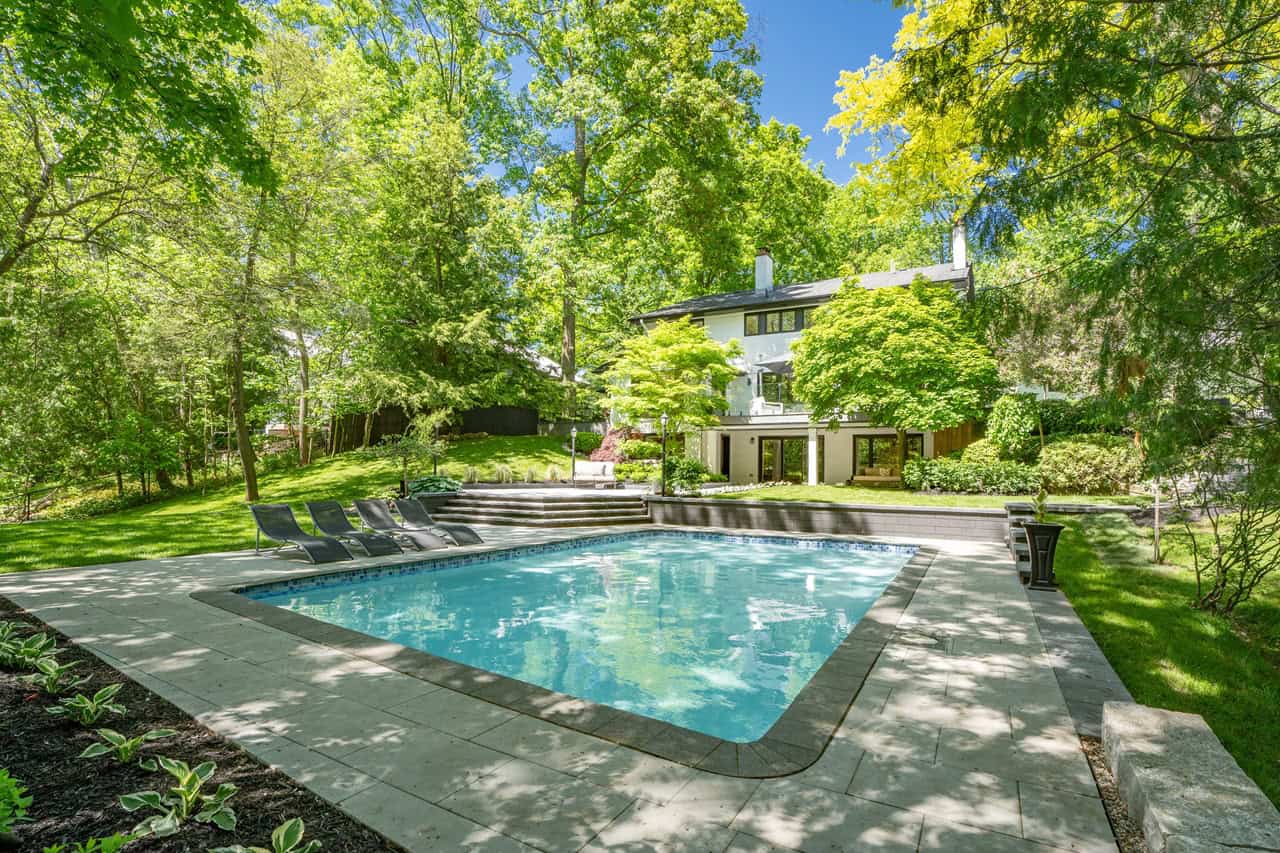 One of the most luxurious homes currently on the market in Mississauga, this huge Lorne Park house boasts exquisite designs and amenities both inside and outside. The house sits on a spacious lot and is surrounded by nature, offering beautiful views and unparalleled privacy.