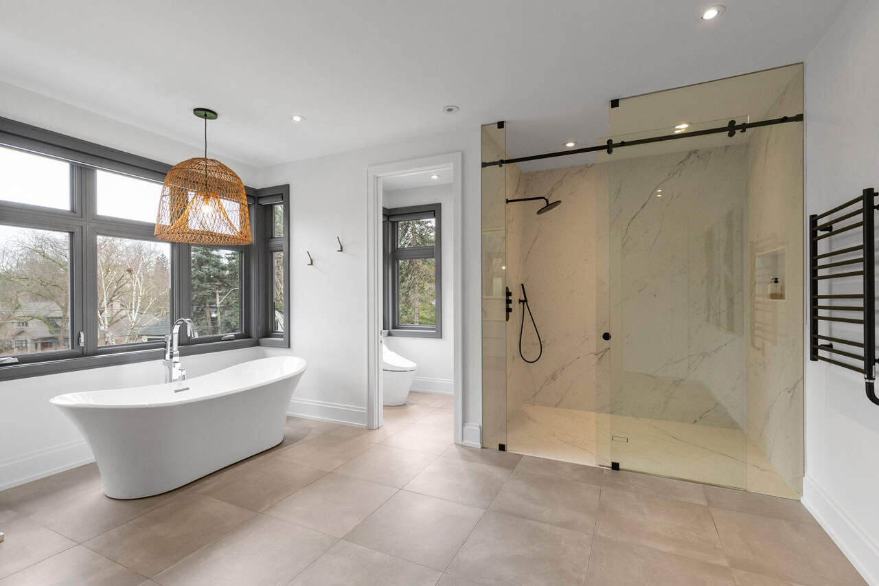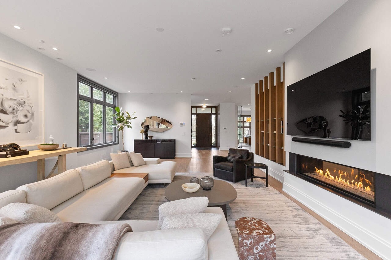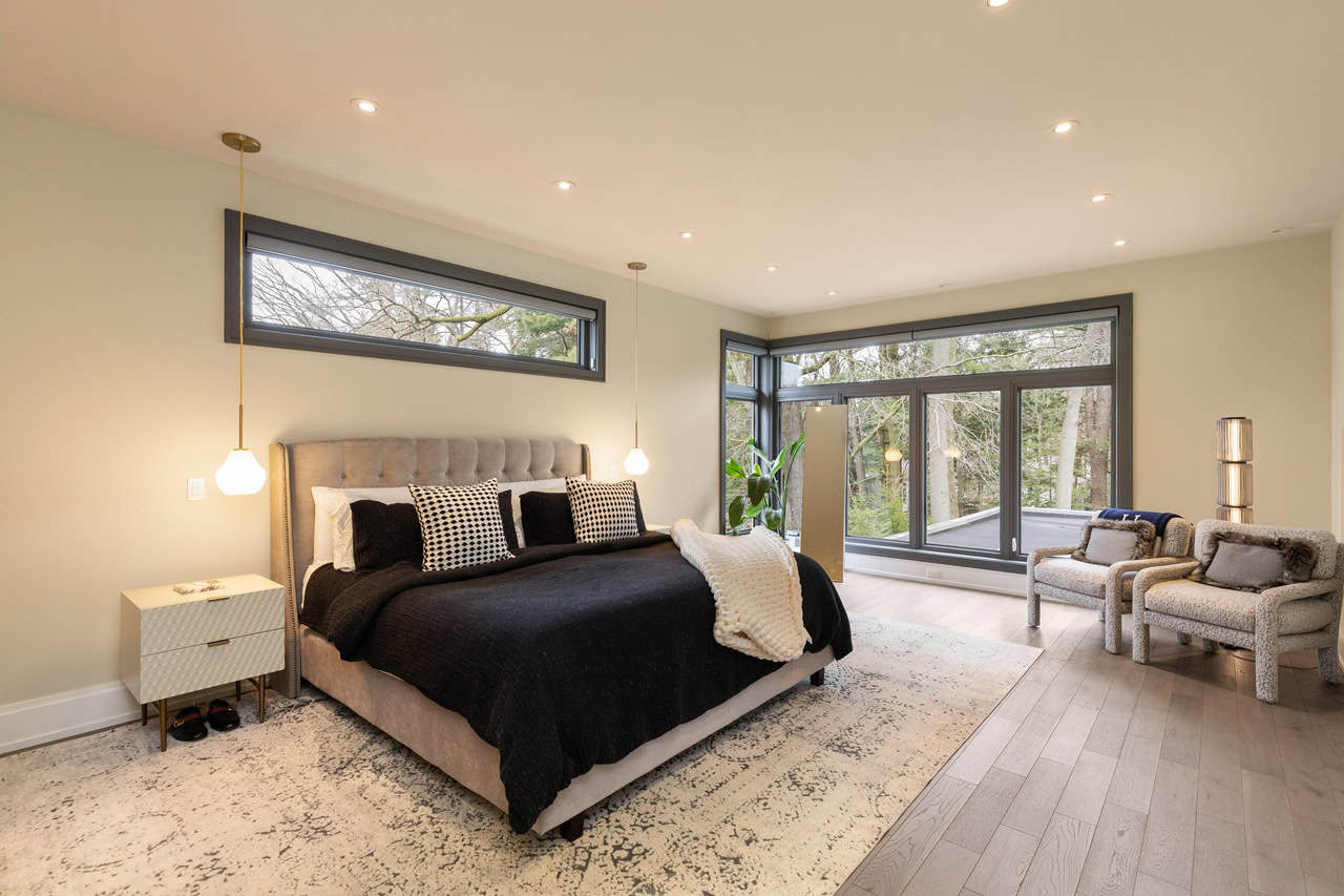 The house impresses even further when you ascend to the upper floor and see the serene primary suite. With its own electric fireplace, wall-to-wall windows, spacious walk-in closet, and a spa-like five-piece ensuite, the primary suite is akin to living in a five-star resort that you never have to leave.