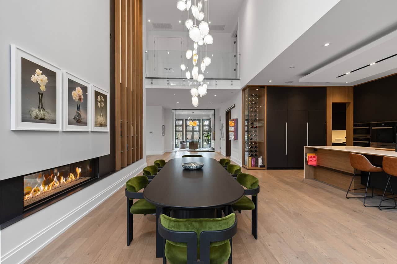 Speaking of meals, they’re made in style inside the gourmet chef’s kitchen, which has an array of premium kitchen appliances fully built in. The sleek kitchen island and glass-enclosed wine display contribute to this room being both stylish and highly functional.