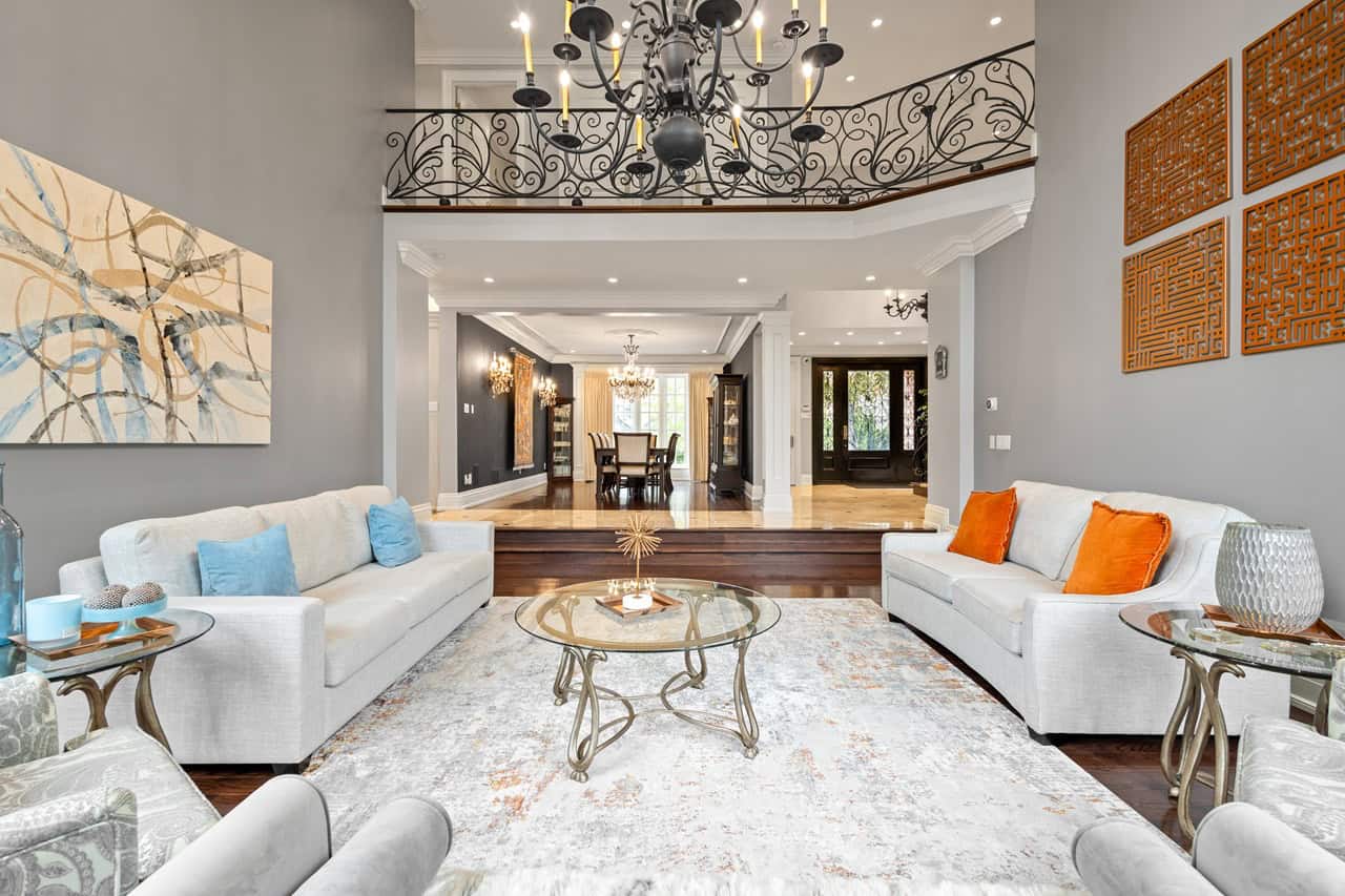 This house itself is a crowning achievement in captivating architectural design. Inside, it tastefully balances grand-scale entertaining spaces with intimate luxury – interior highlights include the soaring ceilings with crown moulding, built-in speakers, pot lights, a blend of rich hardwood and elegant marble floors, and expansive windows letting in an abundance of sunlight.