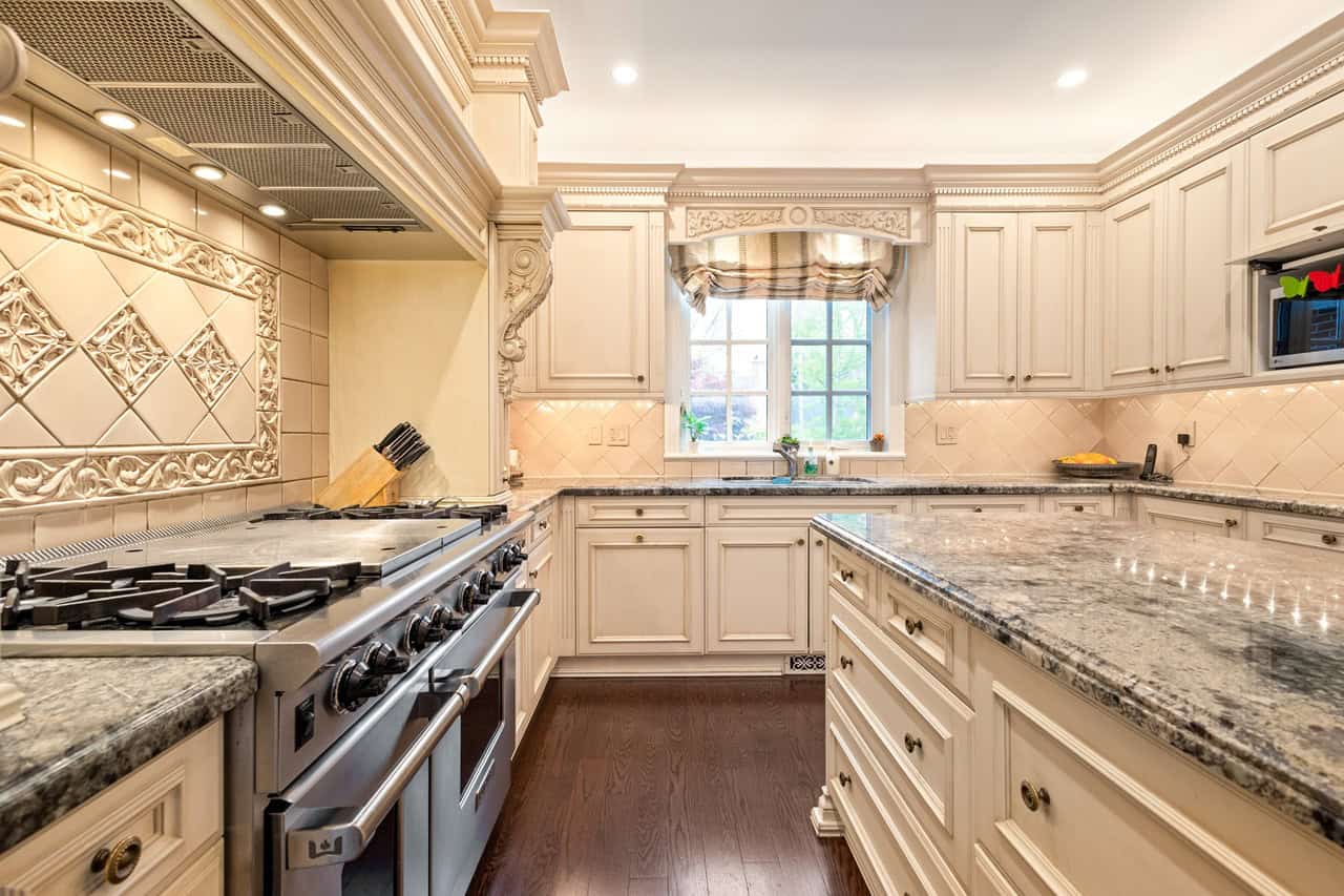 Culinary dreams come true in the home’s gourmet kitchen, equipped with a combination of high-end appliances from premium brands Wolf, Subzero and Miele. The kitchen boasts beautiful granite countertops, as well as an eat-in breakfast area, Butler’s servery and direct access to the backyard.