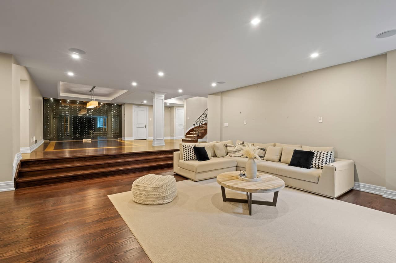 A wide range of impressive amenities are packed into the home’s lower level. Enjoy the spacious custom wine cellar, a large rec room with a stone fireplace and above grade windows, a secondary full-size kitchen, a children’s play area, and tons of storage space for keeping all of your prized possessions safe.