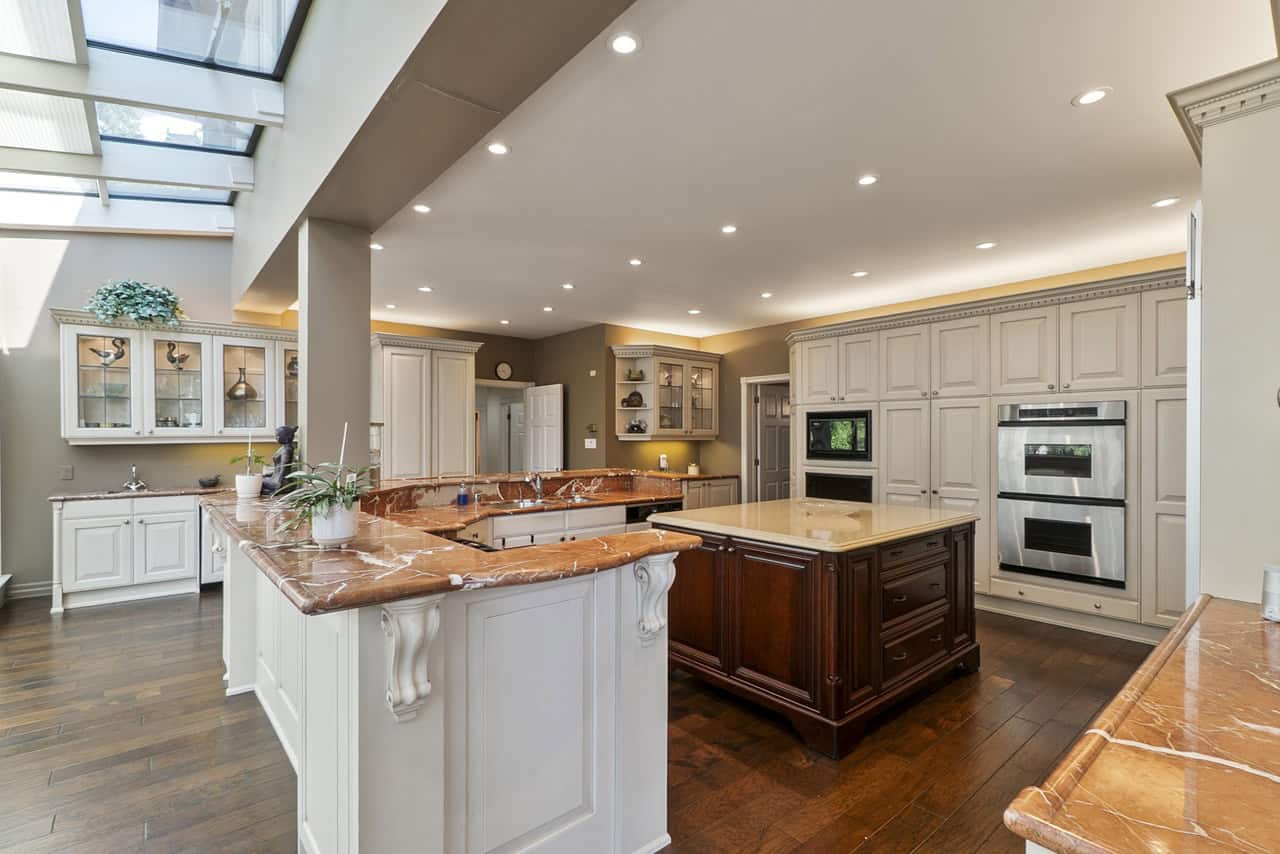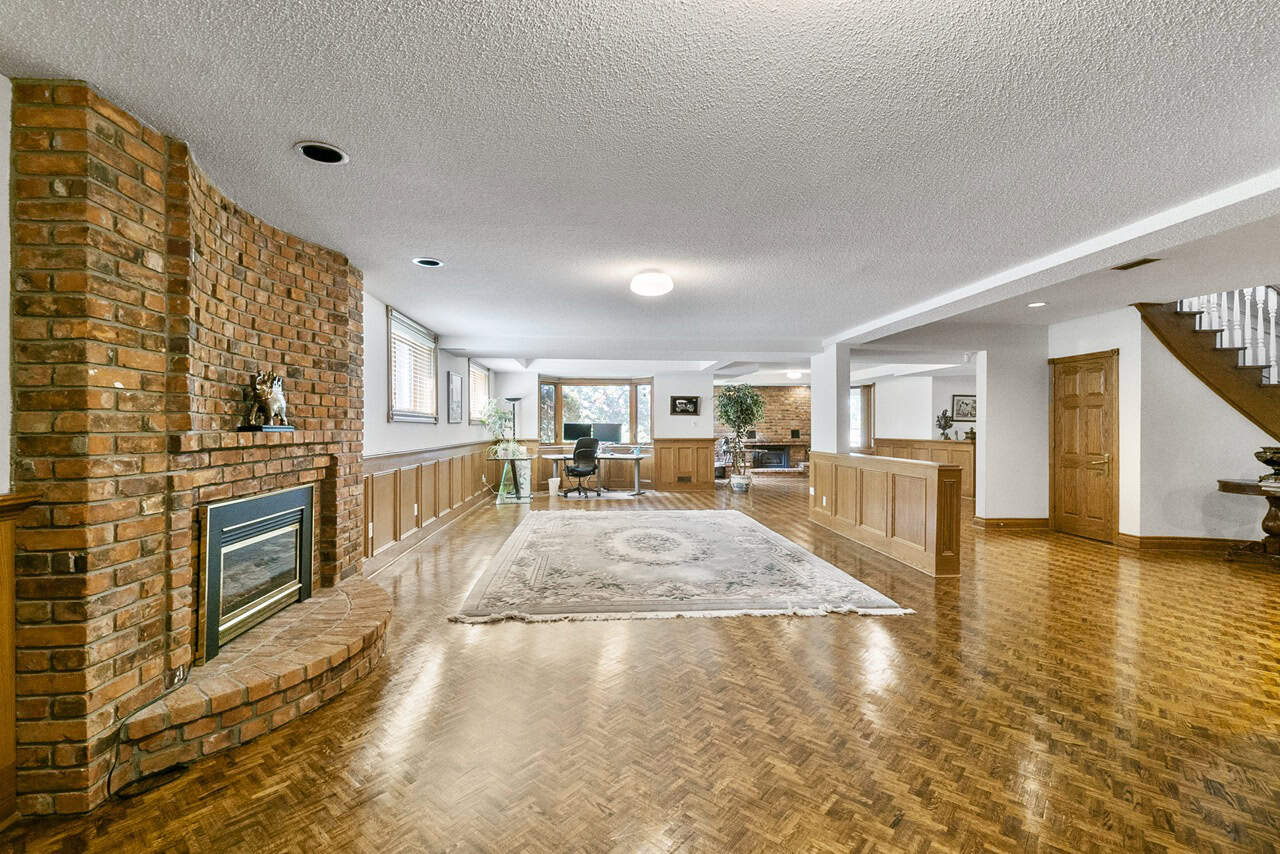 The fully finished walk-out lower level is spacious and highly adaptable, whether you’re hosting large-scale gatherings, accommodating extended family, or seeking rental income potential. This level features a second full kitchen, full bar, custom wine cellar, home gym, sauna, and expansive recreational spaces with multiple lounges and a fireplace.