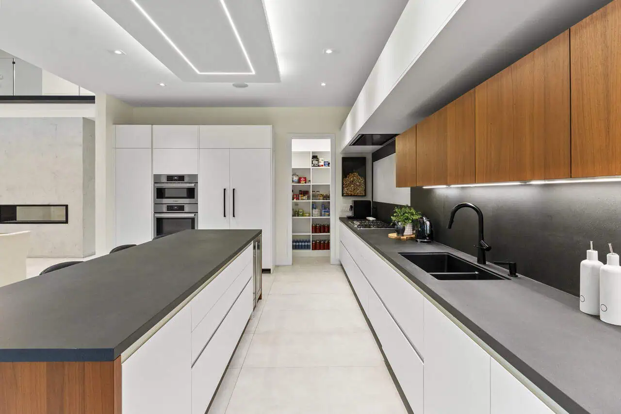 The tour begins with the dramatic double-height foyer which perfectly sets the tone for the rest of the house, leading into sun-soaked interiors where oversized windows showcase the home’s architectural beauty.