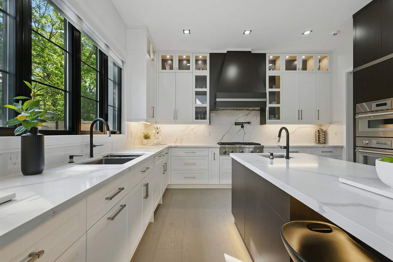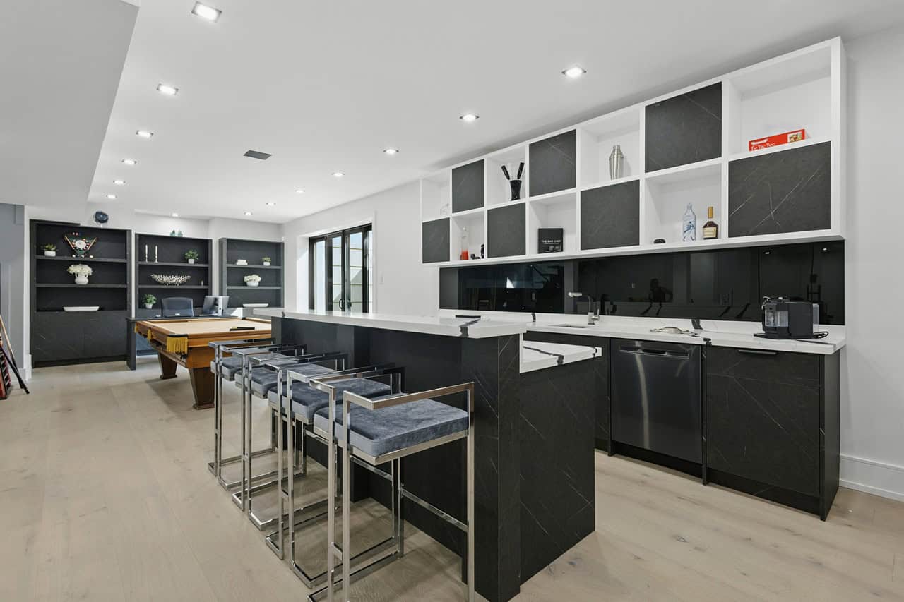 The home’s strength is how it effortlessly combines form with function across its 7,000+ sq. ft of living space. Just take the gourmet kitchen, which comes equipped with high-end Thermador push-to-open appliances, an impressively large centre island, and a dedicated servery connecting to the formal dining space, where meals are enjoyed in lavish comfort.