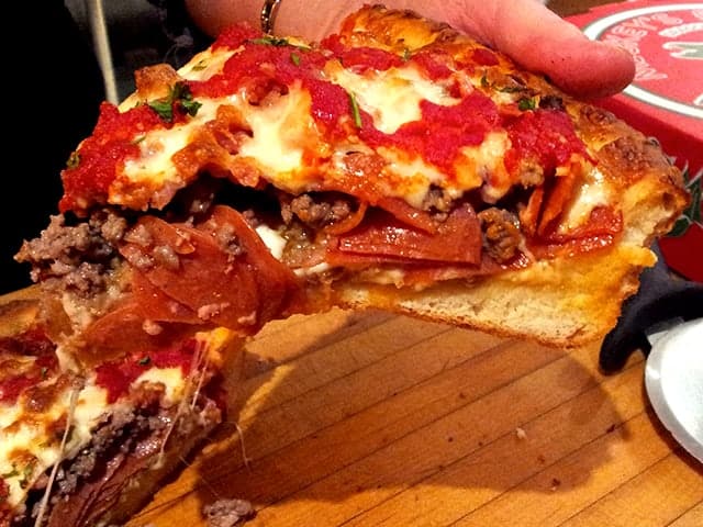 Mickey’s serves traditional pizzas plus what they call a “Killer King,” which is a deep dish Chicago-style pizza for the hungry Chi Town-style pizza lovers. The dough is made in house, and they use ingredients like extra virgin olive oil and cook their meat right on the grill before it goes into your pizza.