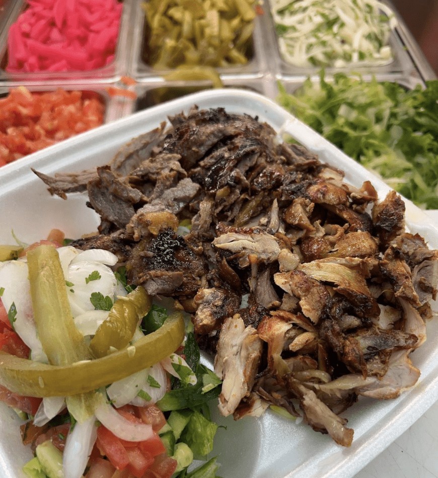It also offers several vegetarian options including the veggie plate and mix wrap with hummus, garlic, lettuce, pickles and tomatoes.