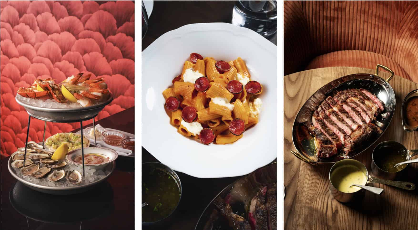 Led by culinary director and Head Chef Jia Zou, the restaurant boasts a menu featuring a bone-in filet, branzino crudo, spicy vodka rigatoni, truffle tagliatelle, New Zealand lamb chops, sweet corn arancini, swordfish Meunière, and more.