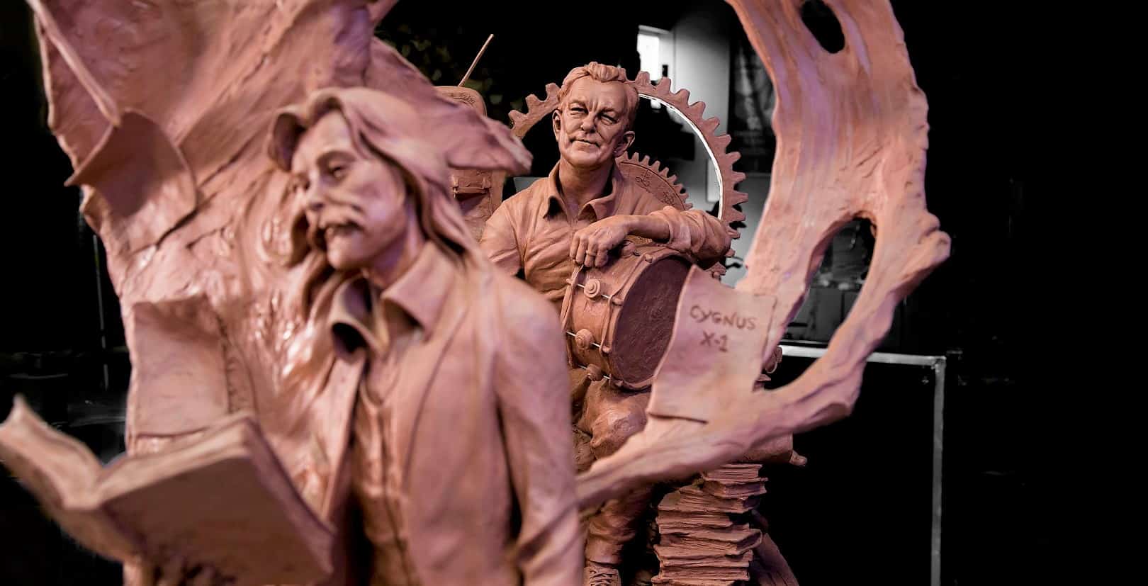 The front sculpture, standing about 12 feet tall, will feature Peart as a young artist and poet circa the 1970s, holding a book and drumsticks, surrounded by sculptural elements bridging his entry to the band. The second will feature Peart in his later years, holding a small piece of his drum kit and offering his drumsticks to visitors.