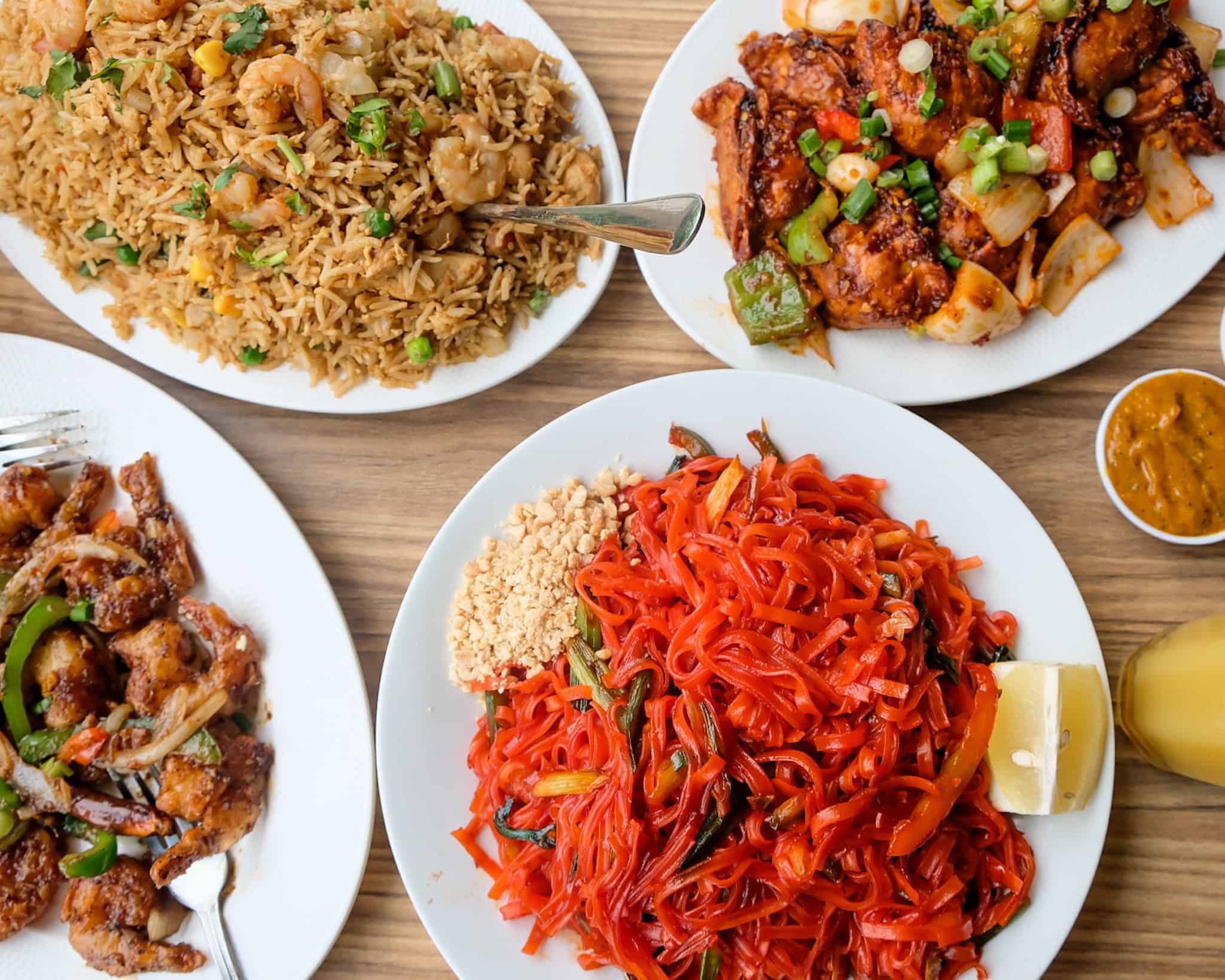 From chilli chicken momos, fried shrimp, sweet noodles and curry dishes, Bam-Bou House has flavourful dishes and impressive portions that are also Halal certified.