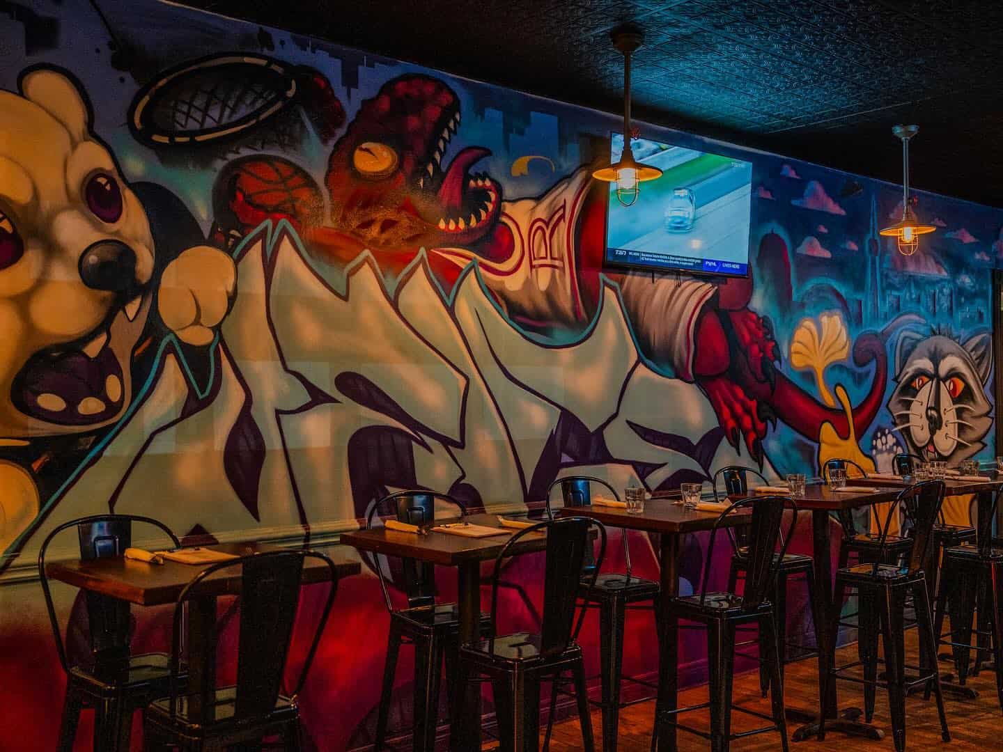 The Wedge’s website simply reads, “sports, drinks, food,” so the restaurant seems like a great atmosphere for having a few beers and bites while taking in a game. The space has a chill sports bar look with graffiti all over the walls.