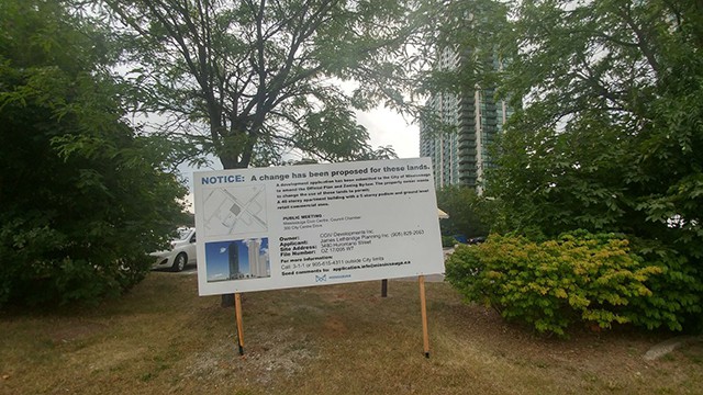 According to the City of Mississauga, an application has been submitted to change the official plan and zoning by-law to permit a 40 storey condominium building with 360 units and 577 m2 (6,210 ft2) of retail commercial space on the ground floor at 3480 Hurontario Street.