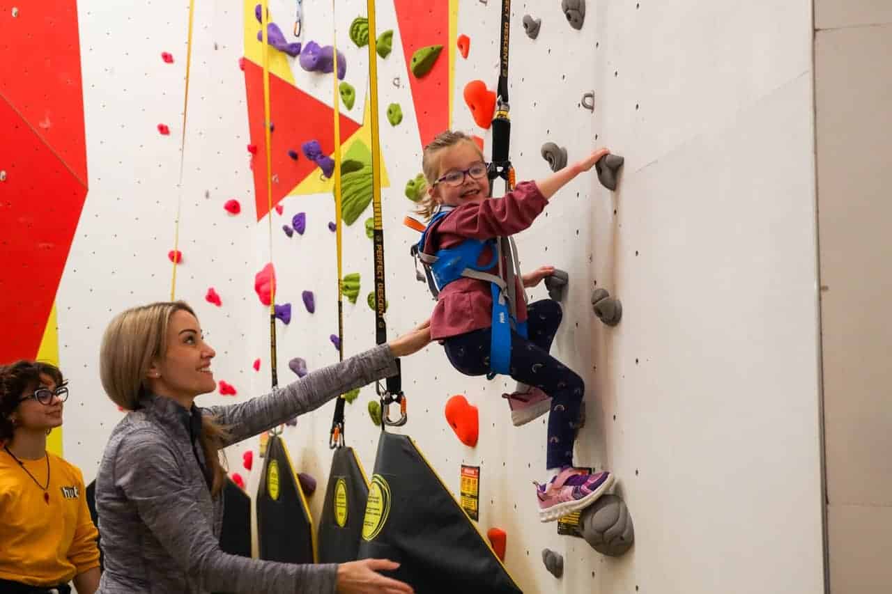 The centre emphasizes a safe, memorable experience where parents can be part of the action just as much as the kids. The friendly staff fit each child into a harness and show parents how to connect the harness to the auto belay, which slowly lowers climbers back down after the climb.