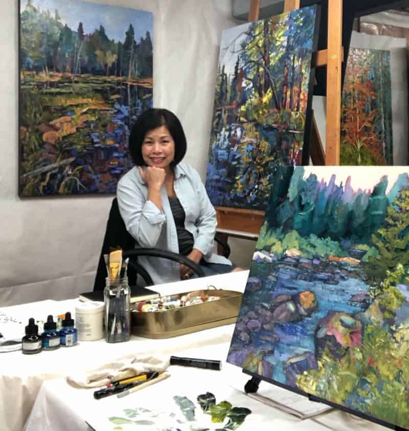 With a BA Economics degree and years in various corporate roles, she facilitates art workshops and in 2019 she was one of the 18 selected artists to participate in the inaugural Landscape Artist of the Year Canada TV show on CBC and Makeful TV.
