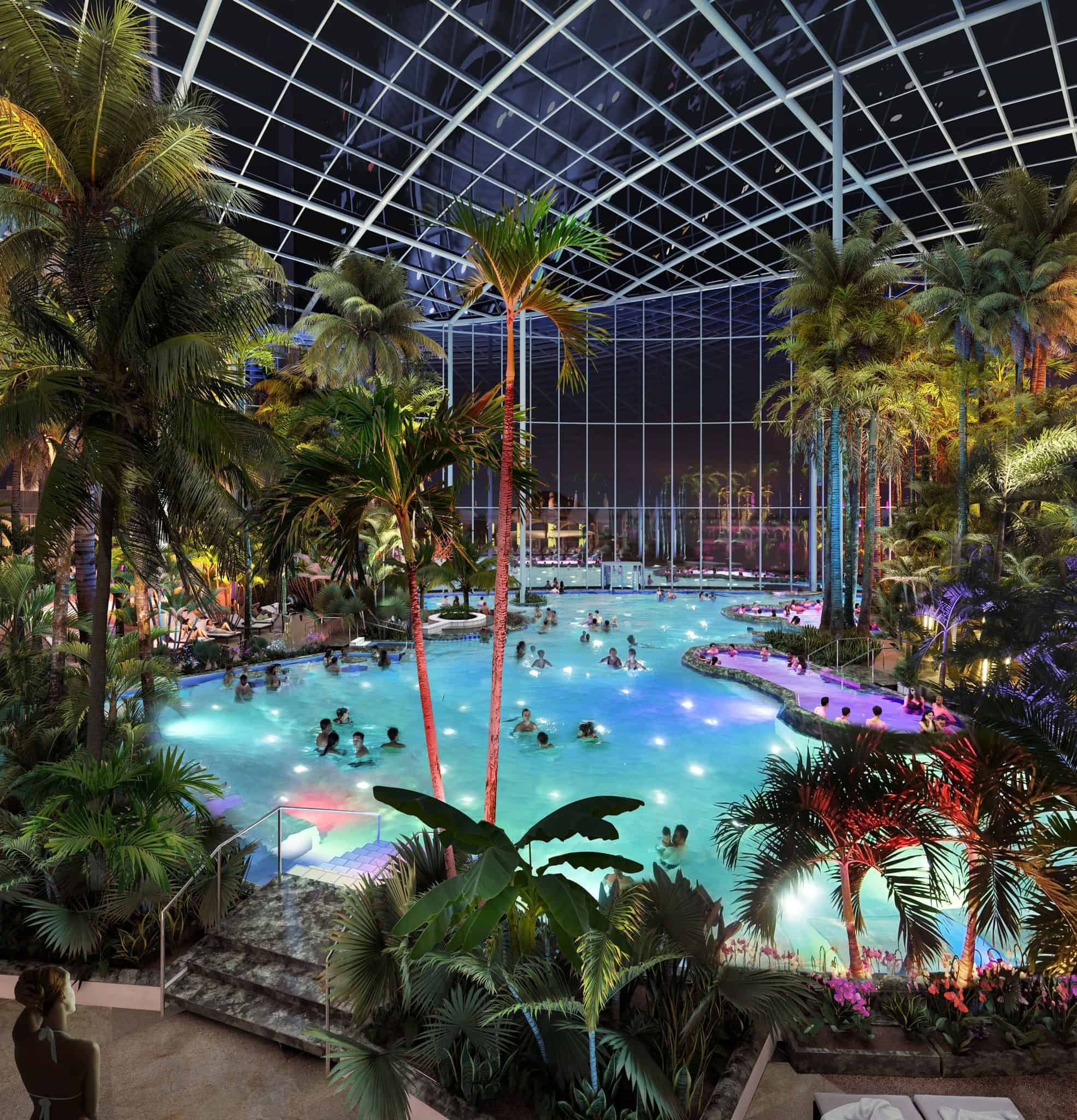 Multiple media reports indicate the project is slated to open in 2029. According to its website, Therme estimates that the waterpark and spa will welcome up to 2.6 million visitors annually.