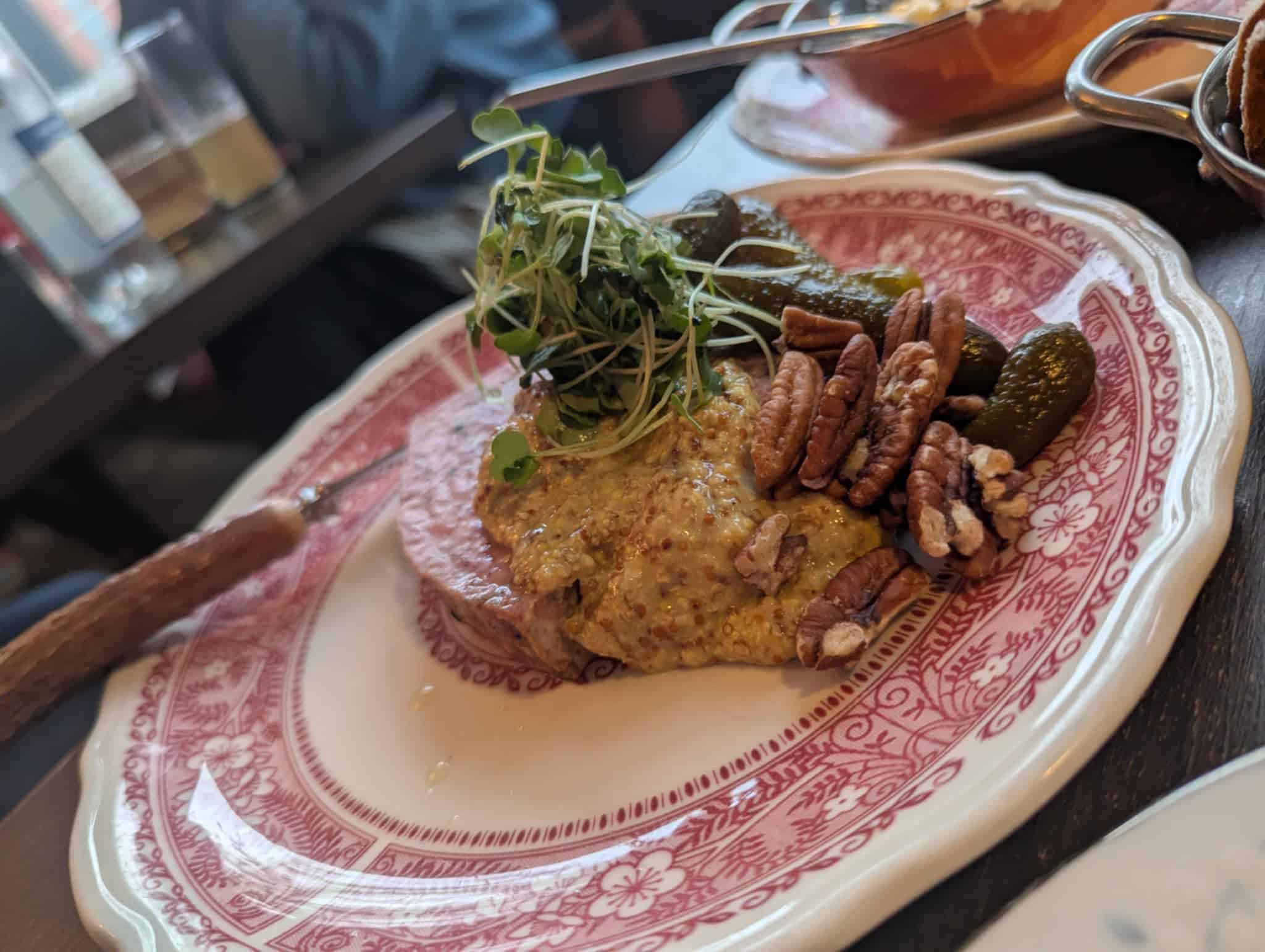 While dill pickles are fine, I’m unconvinced that a brine-soaked cucumber, best known for sitting humbly on a fried chicken sandwich or Cubano, should be the star of any show. Pickle-flavoured chips? Sure. A dill pickle dip? Absolutely. An enormous heaping of tiny gherkins around an otherwise delightful serving of tartare? Inventive, but overwhelming. Slices of pickles on a breakfast sandwich? I prefer tomatoes.