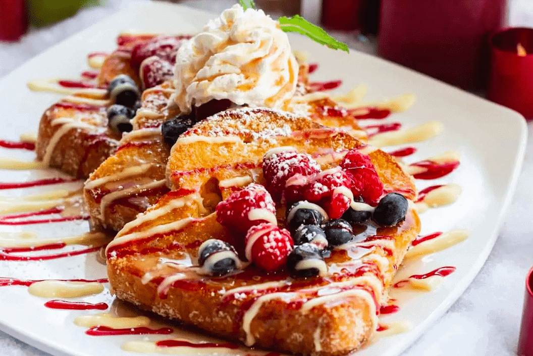 - French Toast Crisp (new): The panko-breaded artisanal French toast adds some nice texture and crunch to your meal. It’s made with blueberries, raspberries, English cream, raspberry coulis, whipped cream and fresh mint.