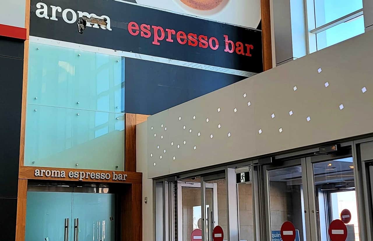 Aroma Espresso Bar, for several years a popular spot for people to grab a beverage to go on their way to the nearby bus terminal, appears to have shut down permanently.