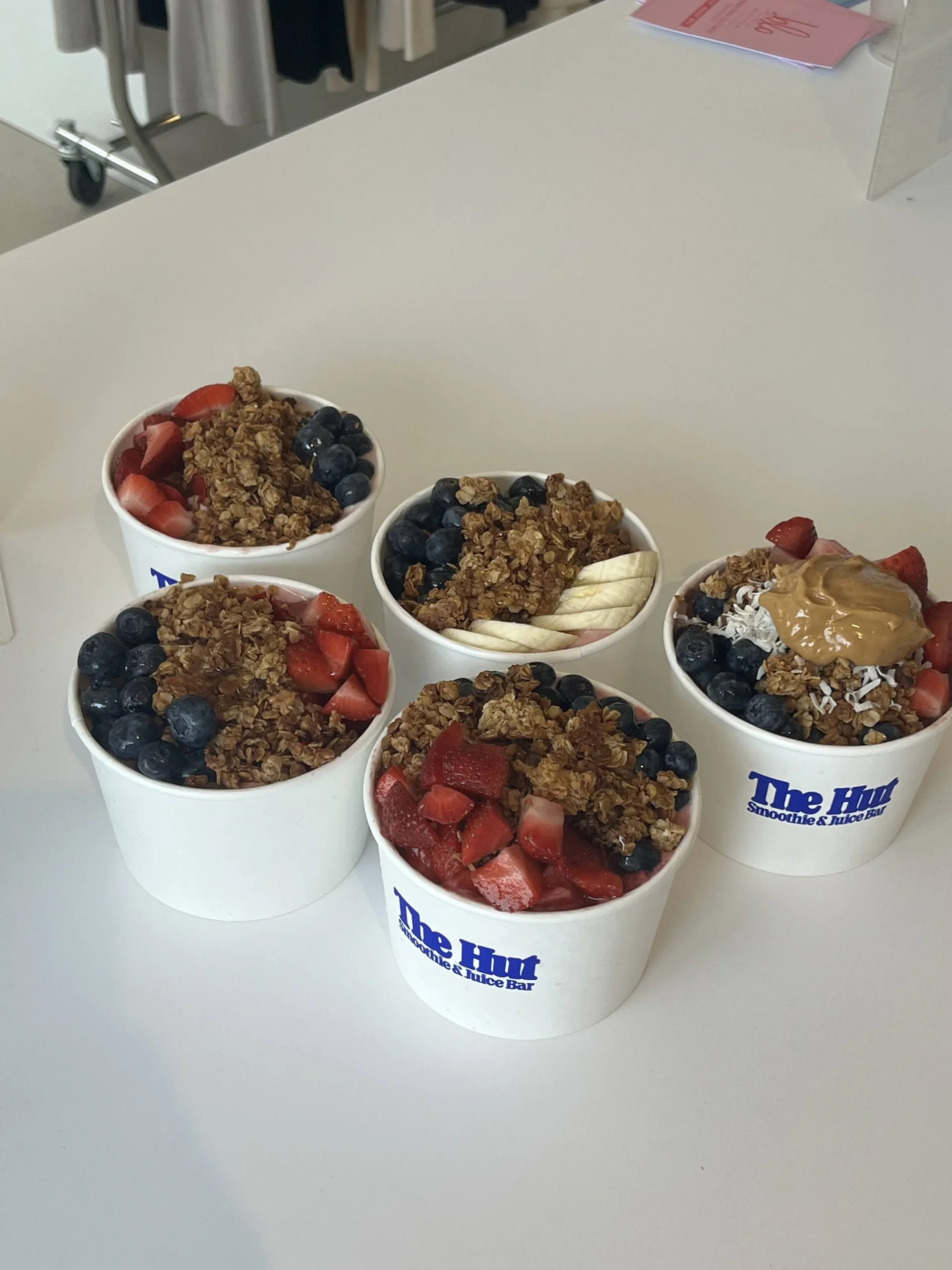 Any smoothie can be made into a bowl, and they also do acai bowls as well as avocado, peanut butter and almond butter toasts. The Hut also serves a decent selection of coffee beverages including matcha lattes.