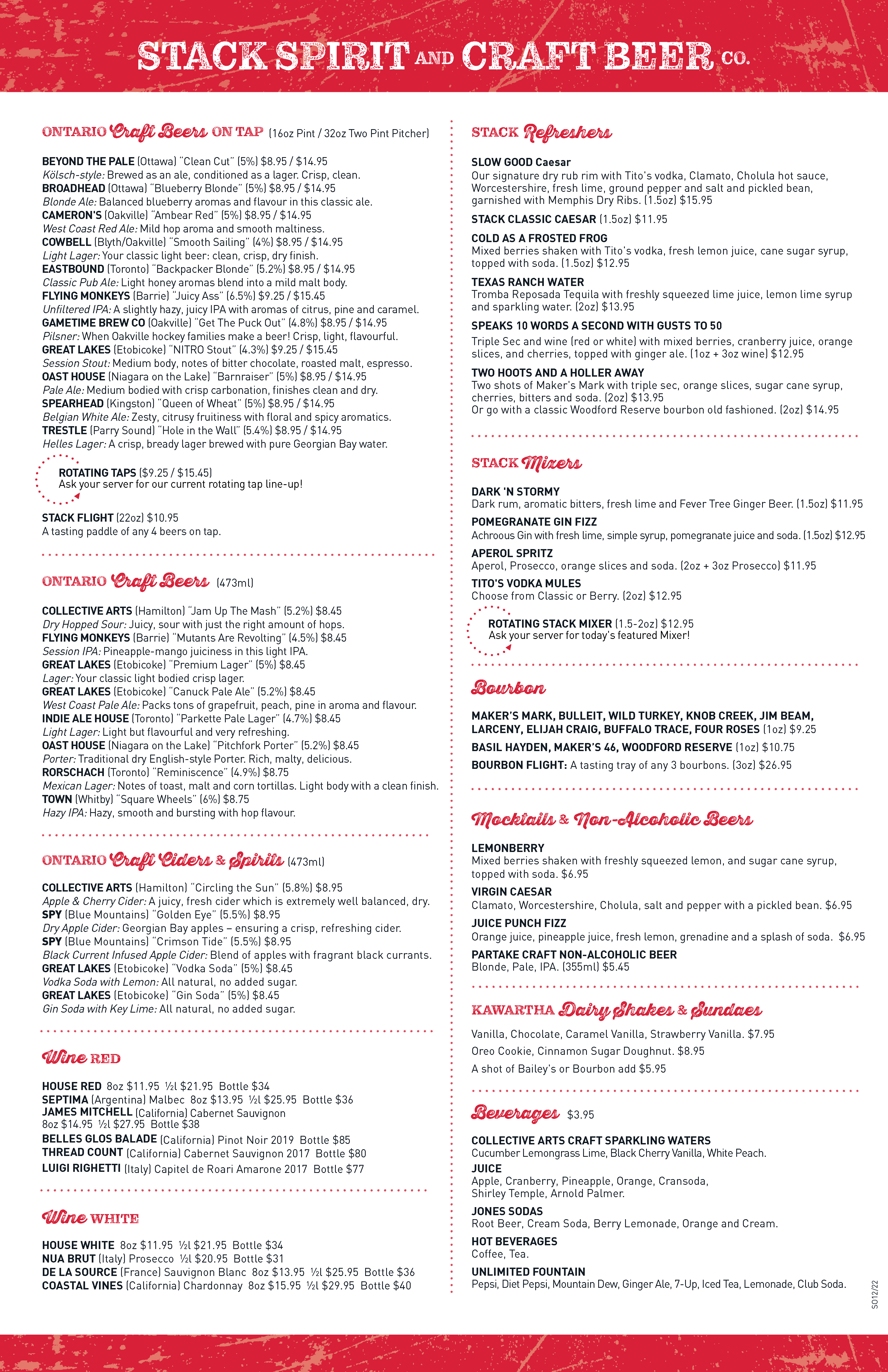 Every dish at STACK can be perfectly paired with a refreshing craft beer on tap or one of their craft ciders and spirits. The drinks selection has something for everyone, including bourbon, red and white wine, and non-alcoholic mocktails.