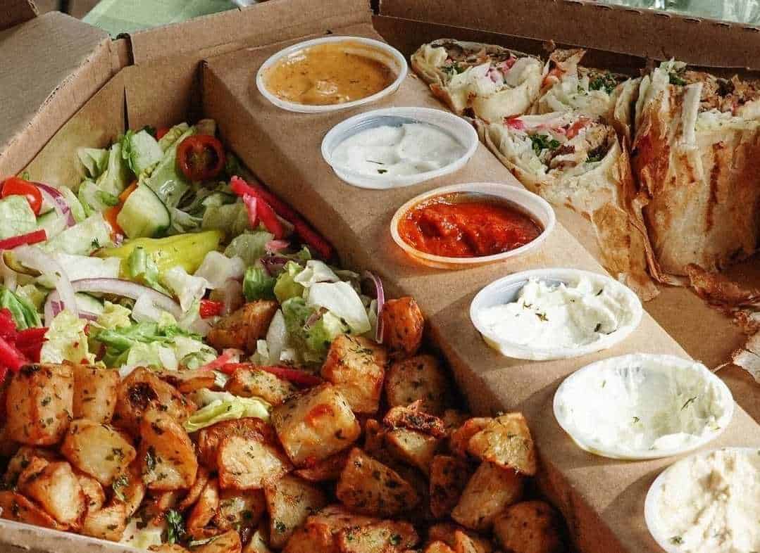 For their shawarma wraps you can choose from chicken, beef, falafel, and there even is a vegan option. available.