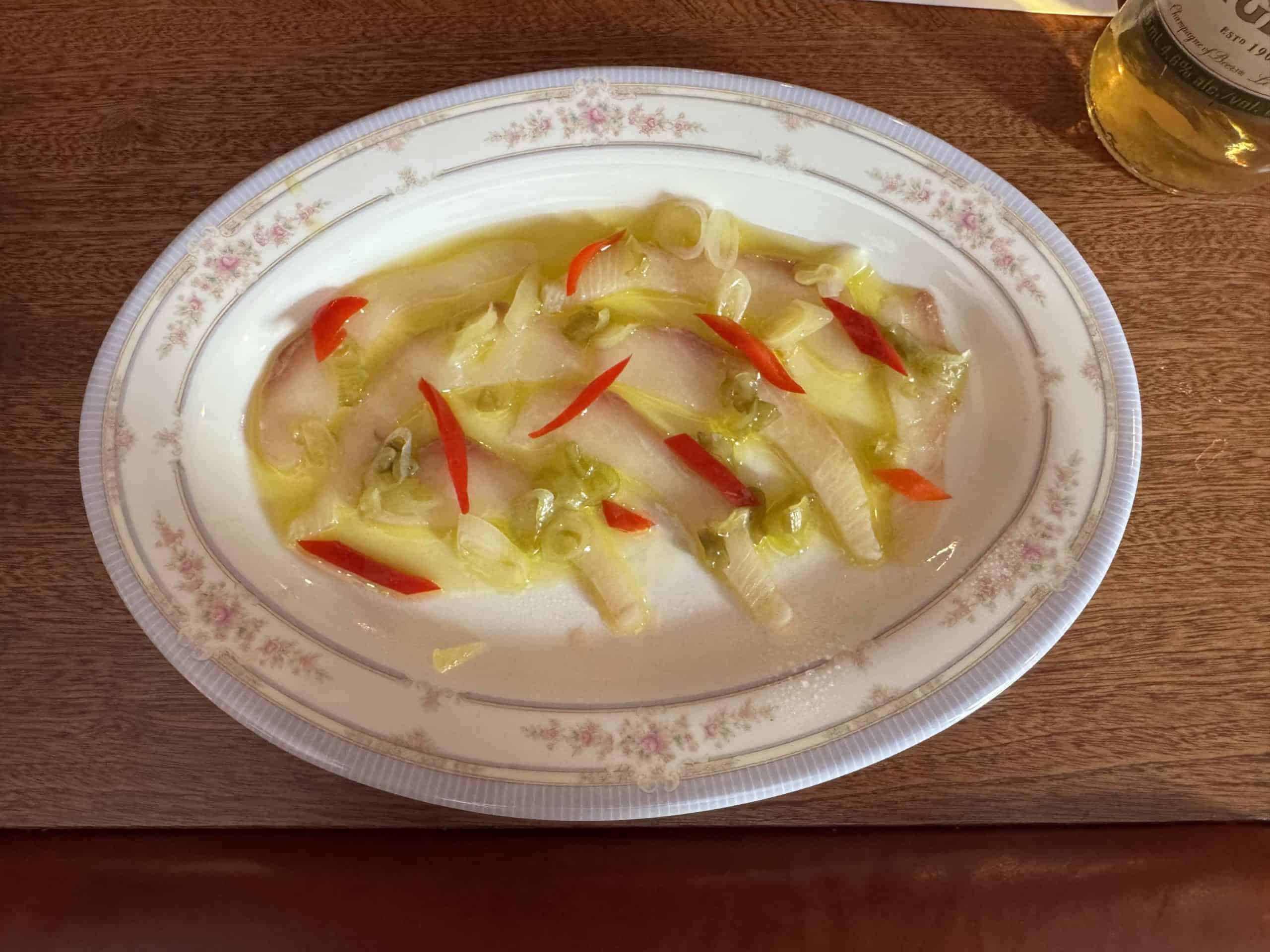 Especially since it’s next door, the space feels a little like an extension of Danny’s Pizza Tavern. There’s a similar whimsical sense of decor that evokes nostalgia, old school bistros and dive bars, with Seinfeld playing on the TV and stained glass light fixtures dangling above.